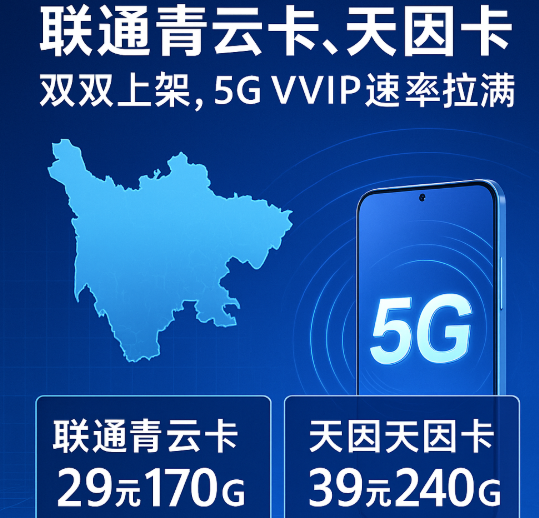 四川的小伙伴注意了,这两张联通专属流量卡真的可以闭眼入。联通青云卡29元170G和联通天因卡39元240G,全部带5G 500M VVIP速率服务,而且支持京东