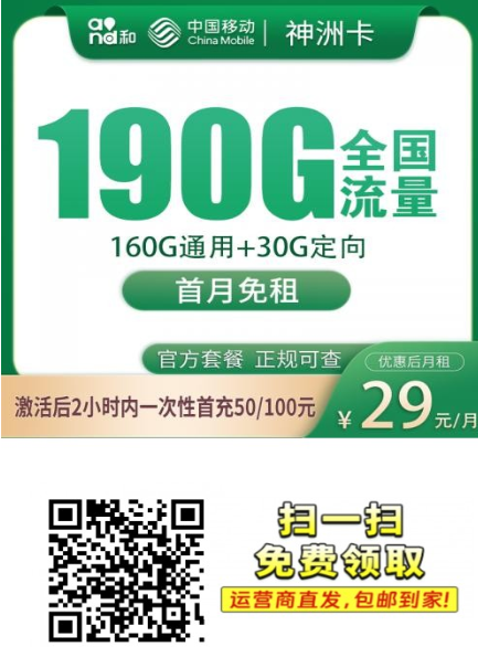 11月的广东移动终于出新卡了。神洲卡这次一登场,就直接把性价比拉满。29元月租,190G流量,还能上门激活。对广东用户来说,这已经不是“优惠”,是诚意。广东移动