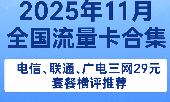 想换一张靠谱的全国流量卡?这篇整理了2025年11月最新上架的三网热门套餐。电信、联通、广电都有新卡登场,统一价位29元,覆盖全国发货,流量都在185G以上,优