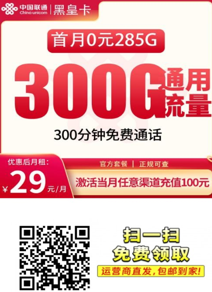 想找一张大流量、长期能用的卡?这款 联通黑皇卡 29 元 300G 全国通用流量套餐 最近挺火. 流量多、通话多、首月还免月租. 很多人都问这卡靠不靠谱、适合谁