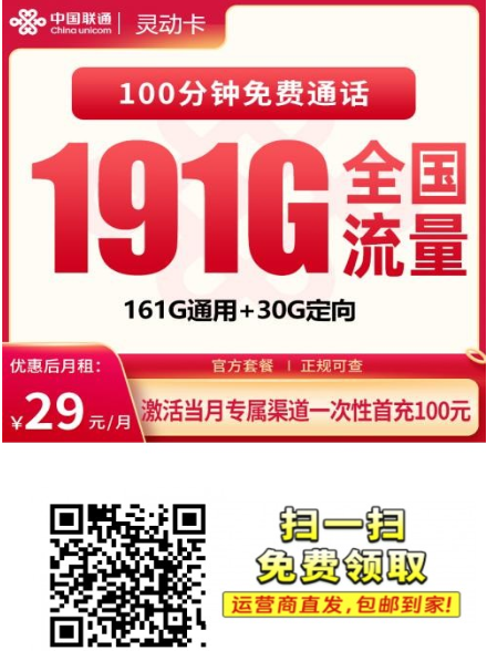 宁夏这边最近出了款新套餐,名字听起来挺普通:联通灵动卡。但看完配置,我只想说一句这价格,放别的省早就没了。亮点月租29元,直接给你 191G流量 + 100分钟