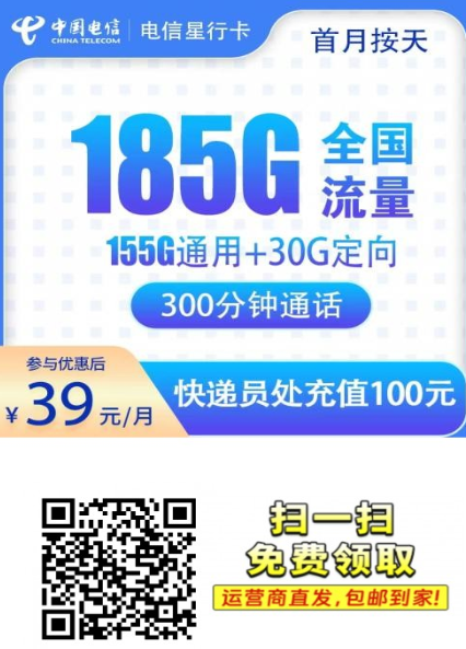 说实话,最近湖南这边电信有点猛。出了个柏叶卡,月租39块,直接给185G全国通用流量+200分钟通话。重点来了,流量当月到账,不限定向,全通用!要是你现在还在用