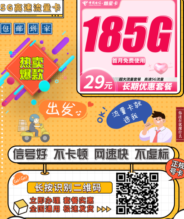 湖南本地有没有靠谱又稳定的大流量卡?有。这张电信湖南卡主打29元185G全国流量,套餐长期有效、不涨价、官方可查。信号稳、网速快,连刷视频都不卡。要换卡、要升级