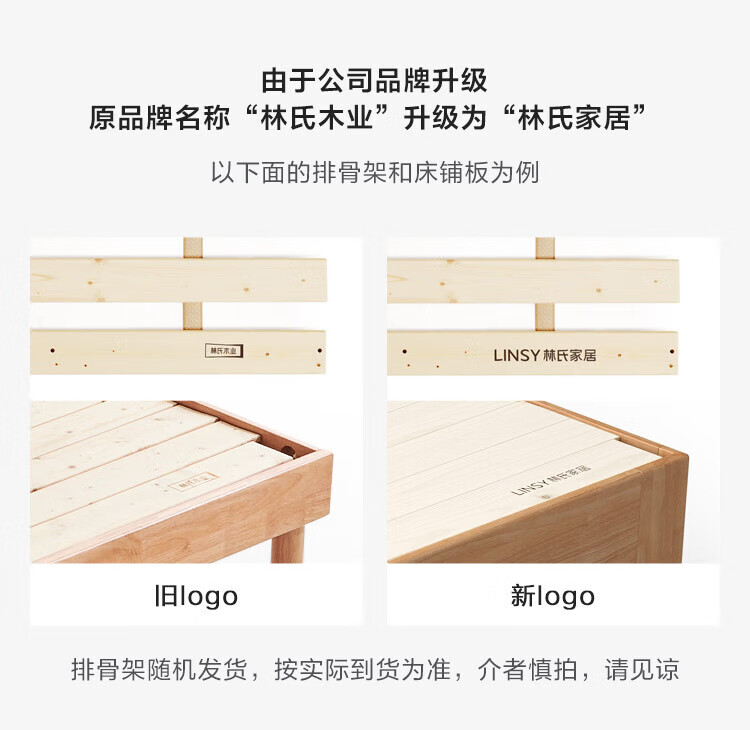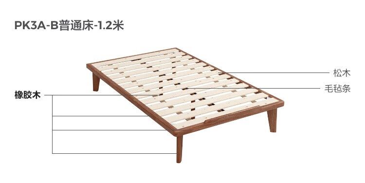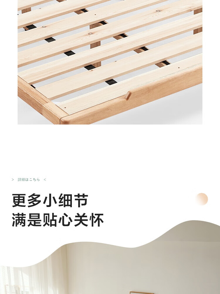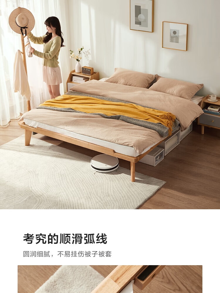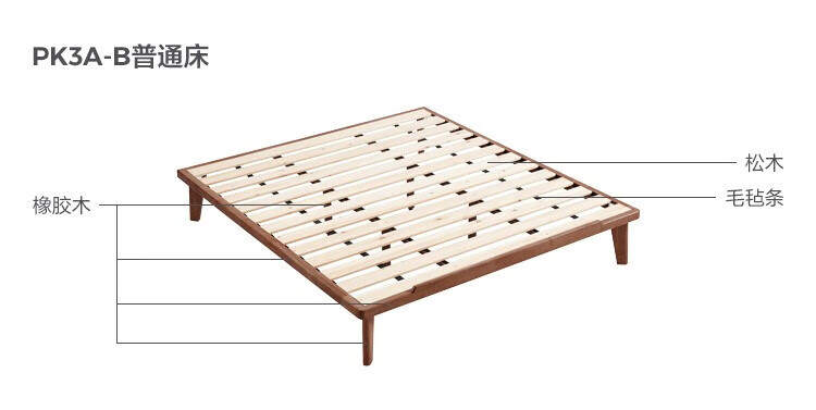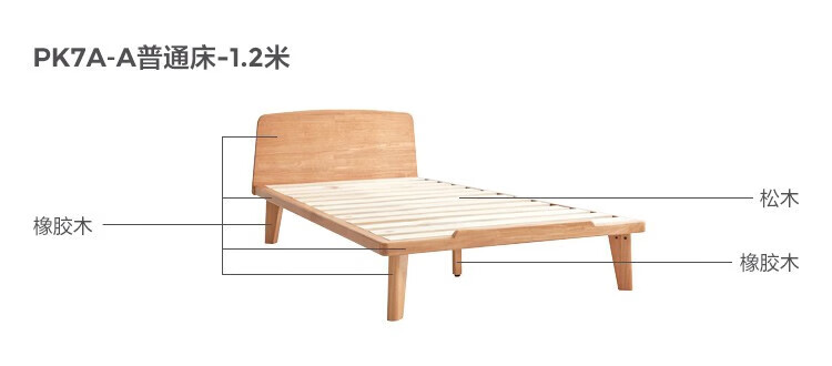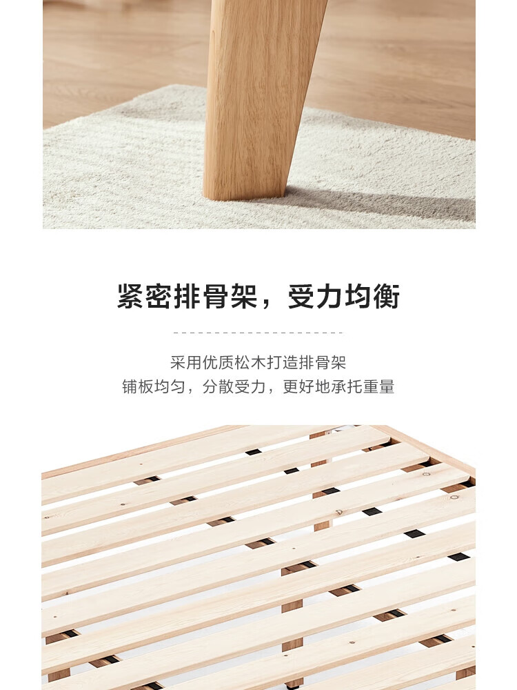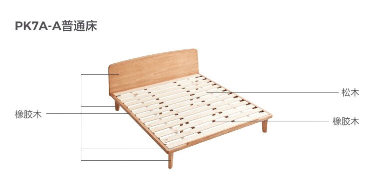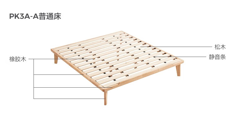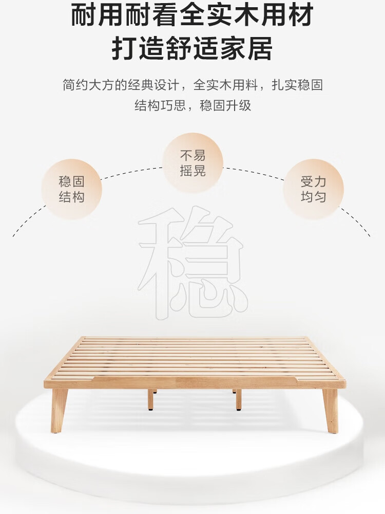 LINSY KIDS无床头排骨架床全实木床主卧北欧原木风床架家用橡胶木单人床 全实木无床头床 1.5x2米 单床