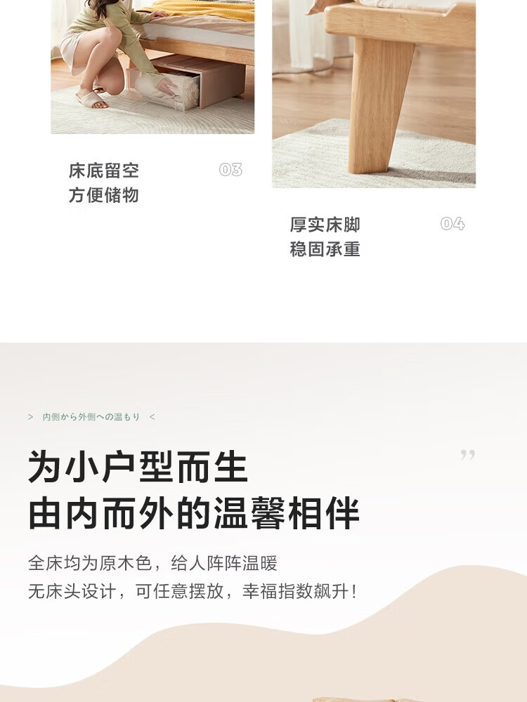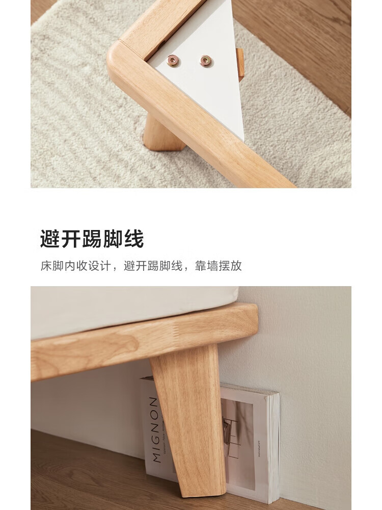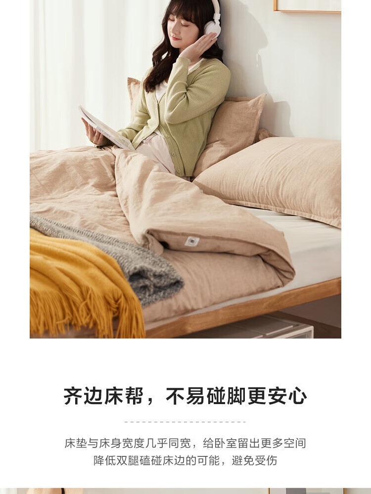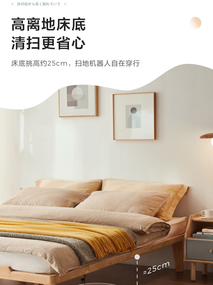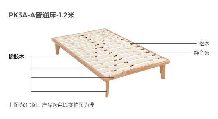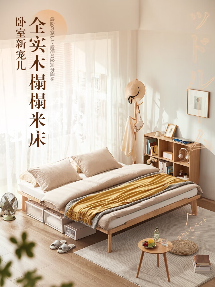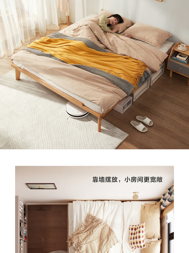 LINSY KIDS无床头排骨架床全实木床主卧北欧原木风床架家用橡胶木单人床 全实木无床头床 1.5x2米 单床