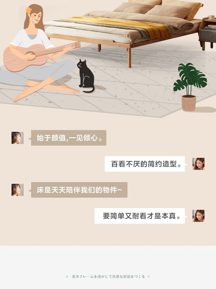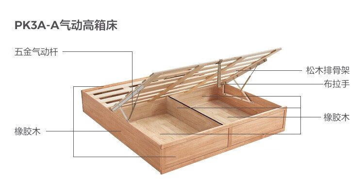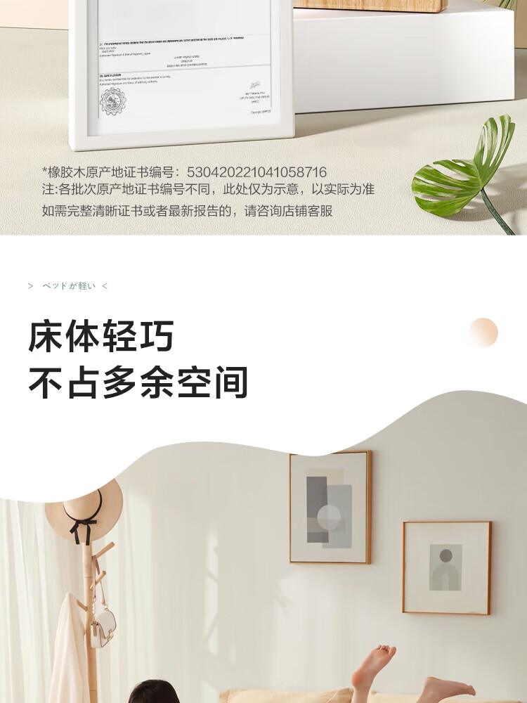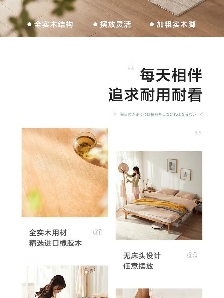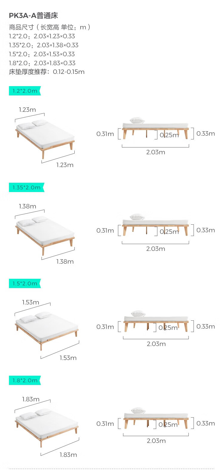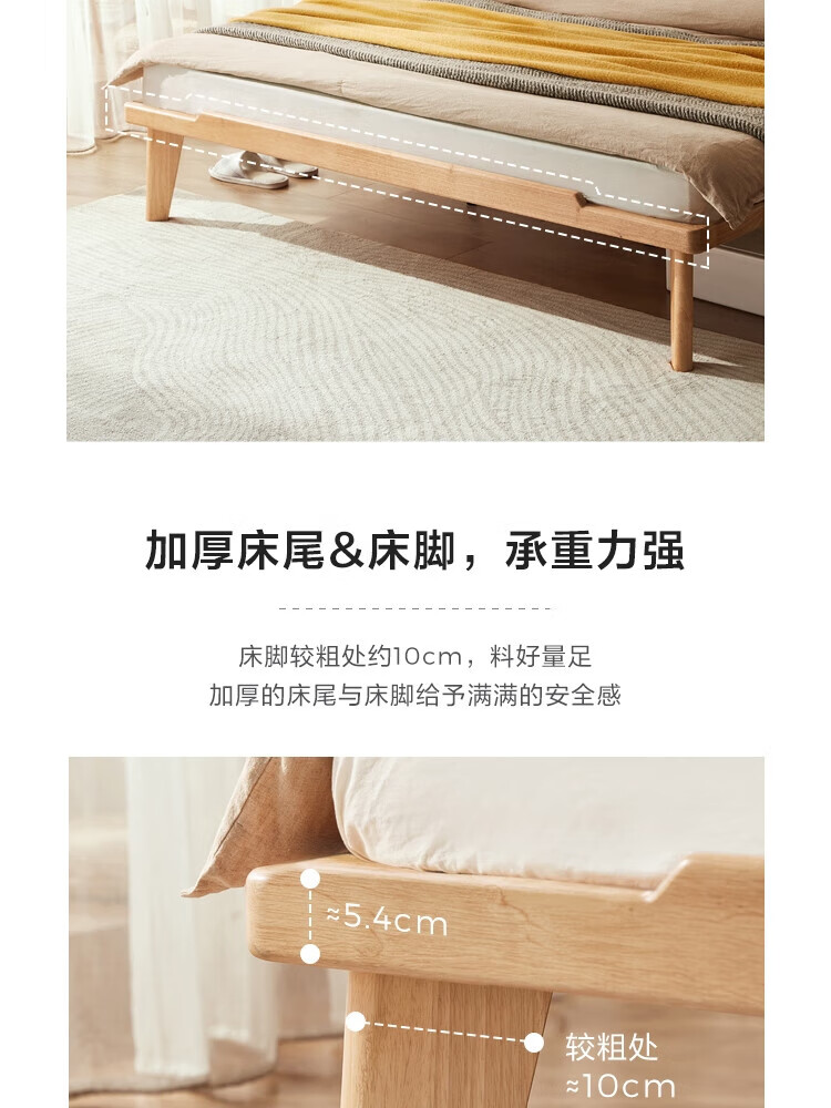 LINSY KIDS无床头排骨架床全实木床主卧北欧原木风床架家用橡胶木单人床 全实木无床头床 1.5x2米 单床