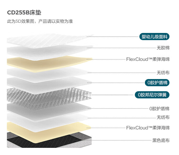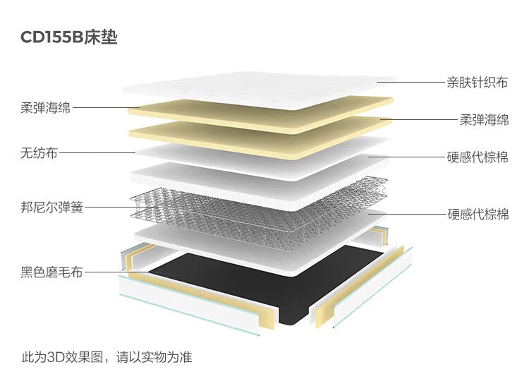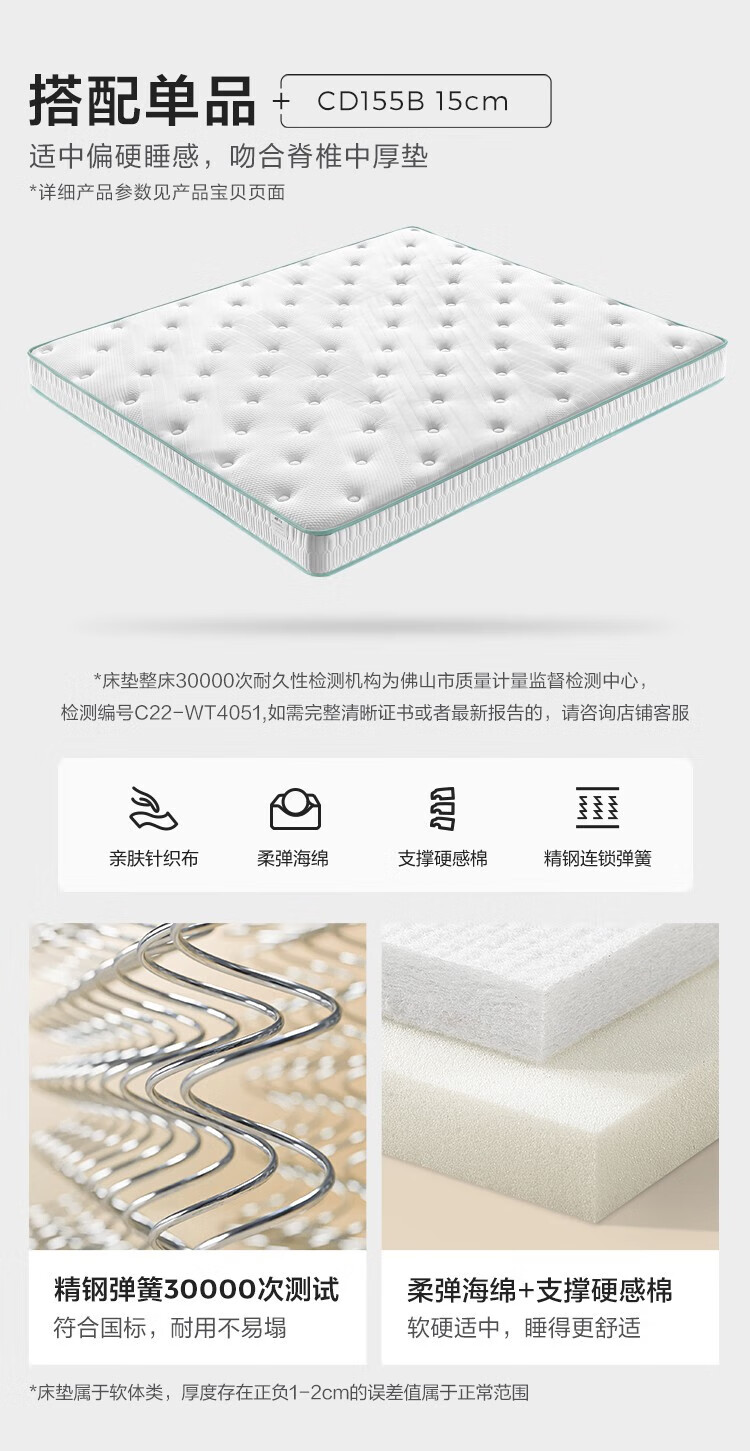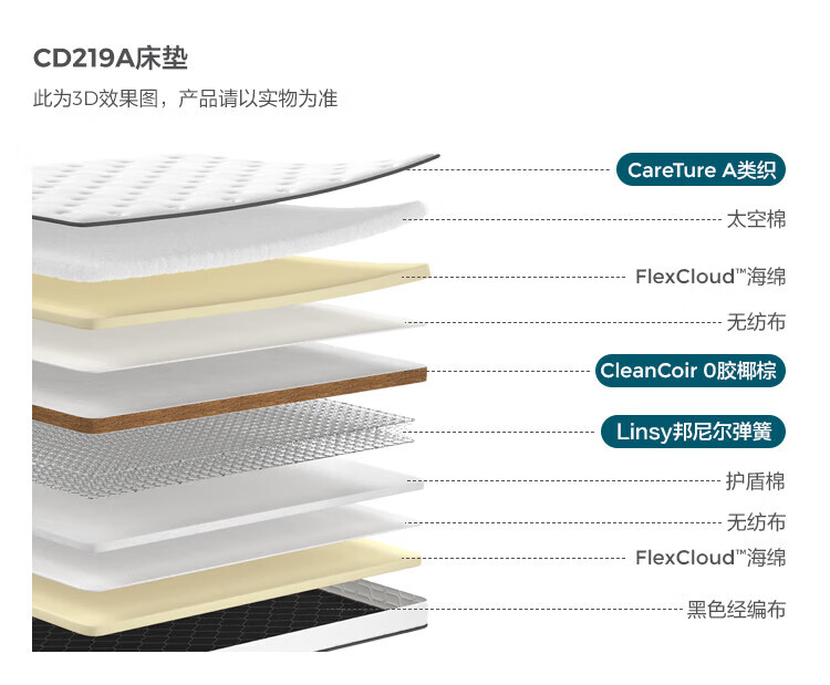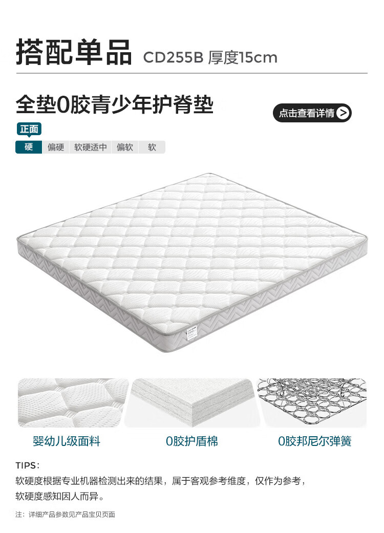 喜临门城市爱情极光白2S 椰棕床垫 邦尼尔弹簧床垫 1.5x2米 偏硬