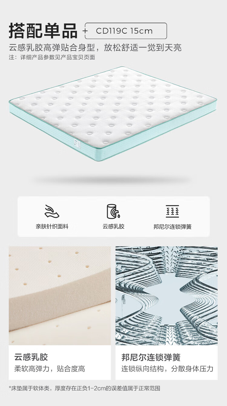 喜临门【线下同款】真皮大婚床套餐缓缓pro(米)+白骑士plus床垫 1.8*2米