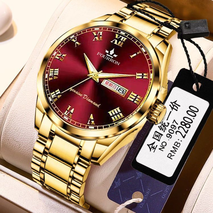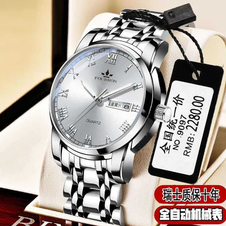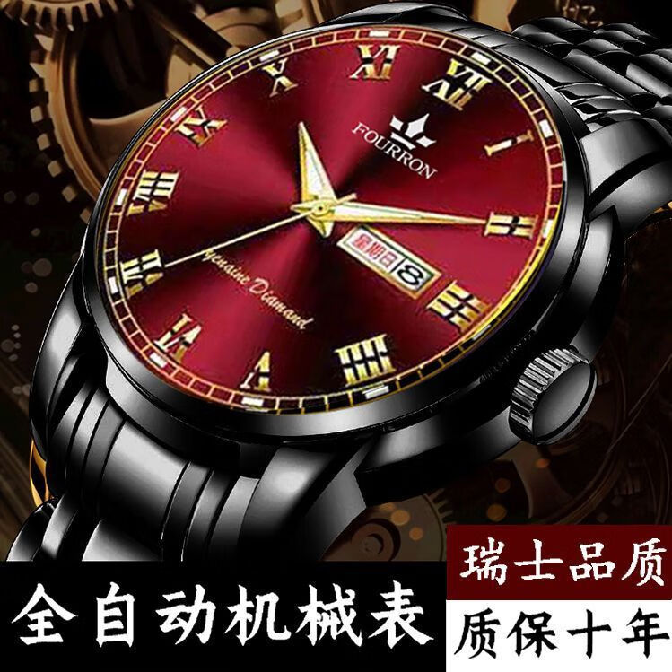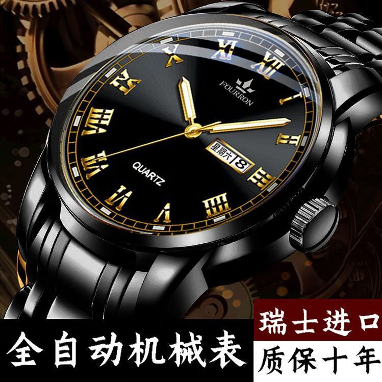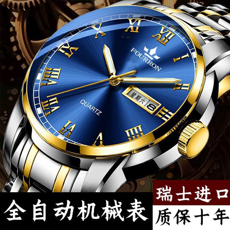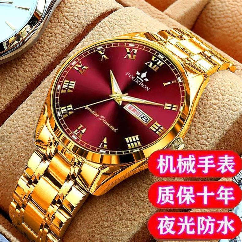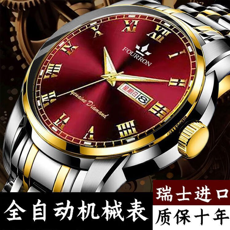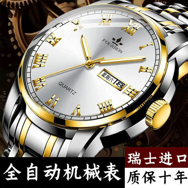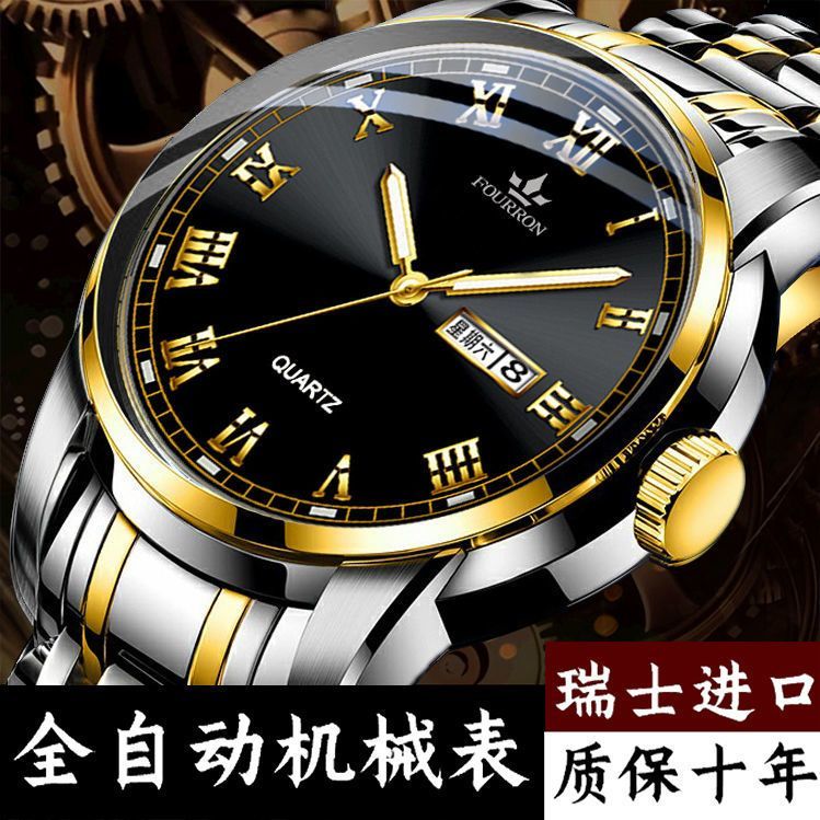 新款正品瑞士名牌18k金色男士手表男机械表全自动防水高档帅气男 镶钻白金【单日历】
