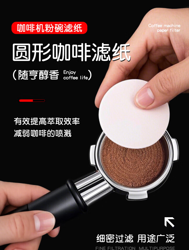 凝彬德国摩卡壶圆形滤纸意式咖啡机手柄专用粉碗过滤纸滤水纸咖啡滤片 51mm白色【100片/盒】 【提高萃取率 提升油脂香气】