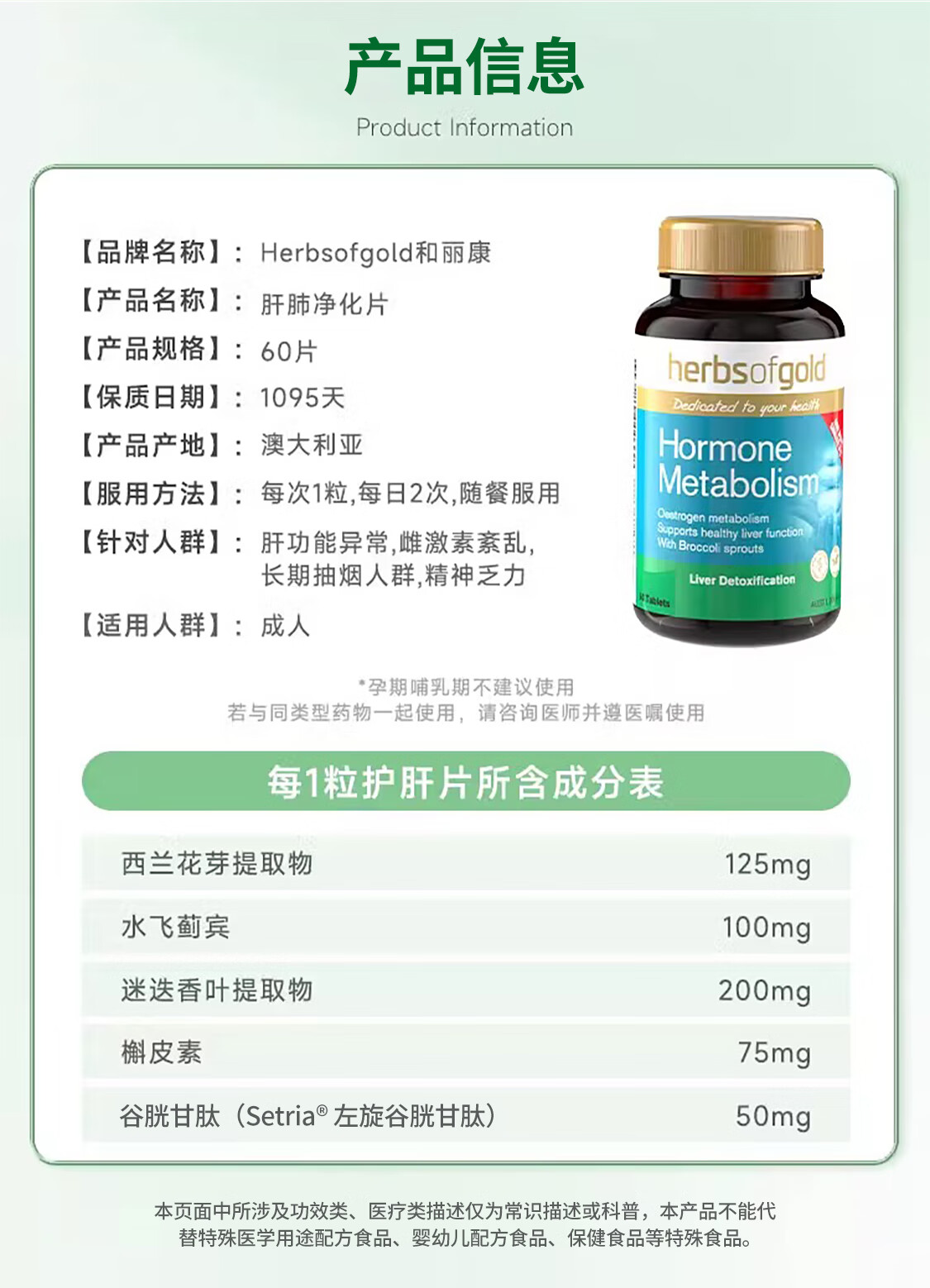 herbs of gold奶蓟草护肝清肺片 养肝护肝槲皮素护肺代谢排毒60粒 澳洲进口 【肝肺精华片】60粒