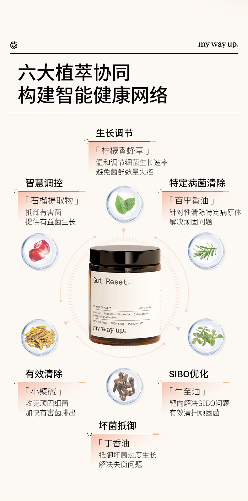 My Way Up肠道焕新胶囊牛至油调养肠胃菌群健康石榴提取物60粒