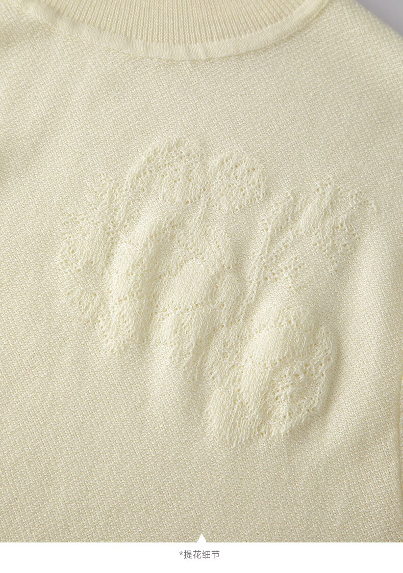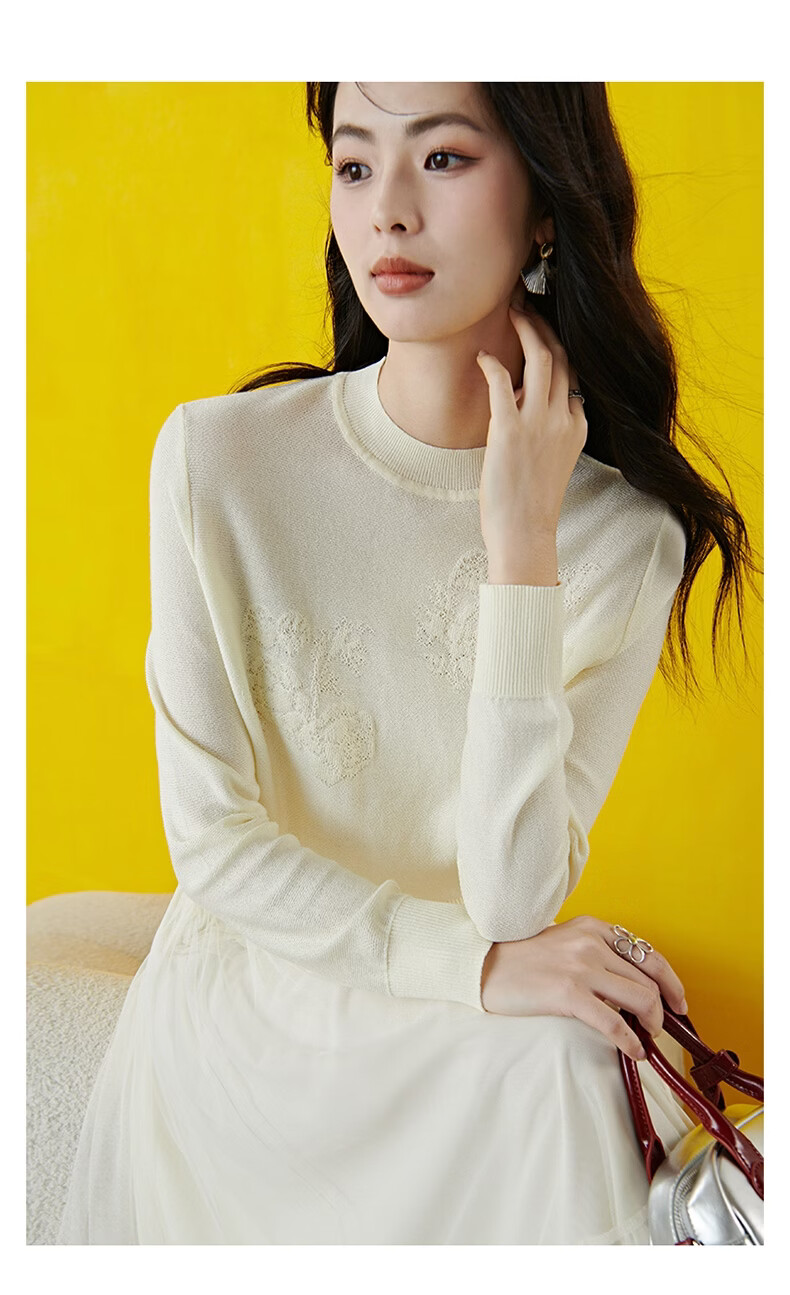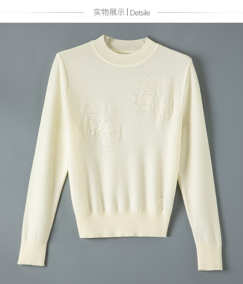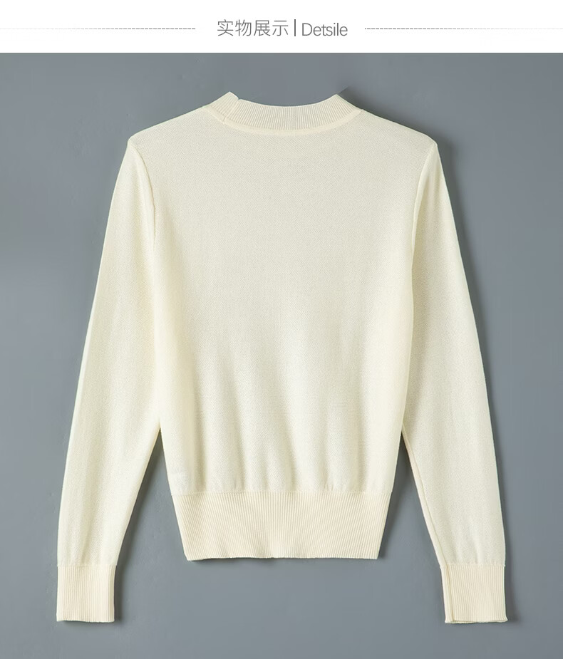 晚白2026年春款时尚优雅洗烘定型立领上衣立体提花亲肤柔软针织衫女 米杏色 M