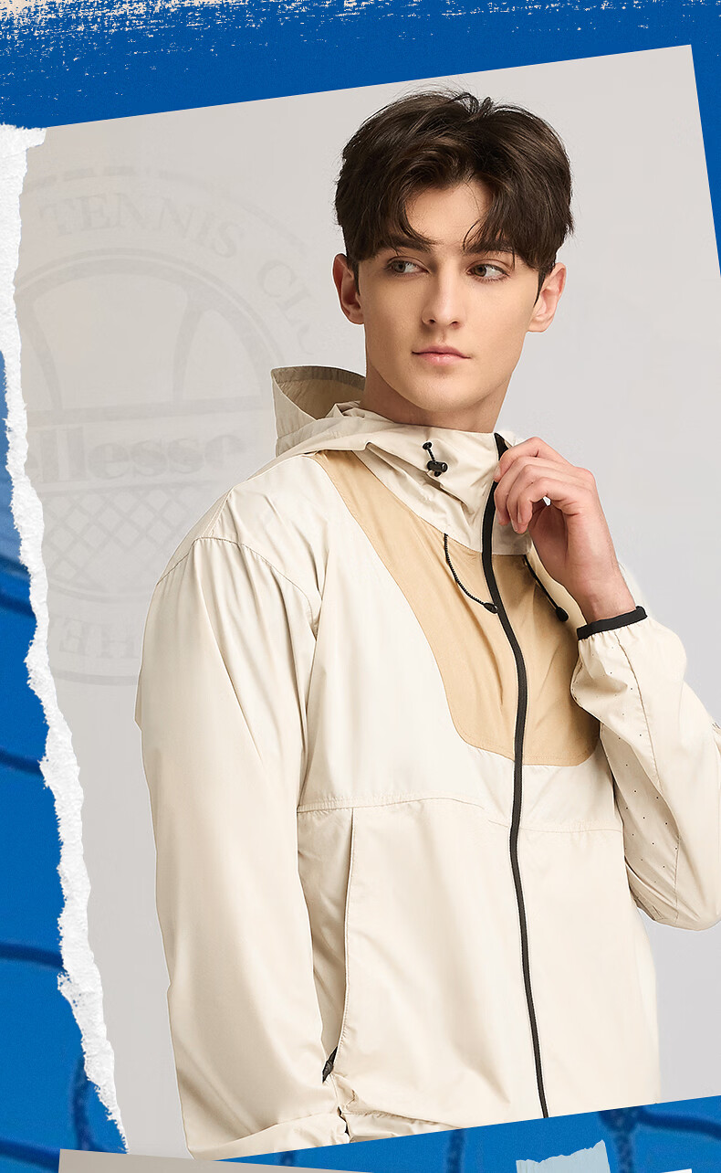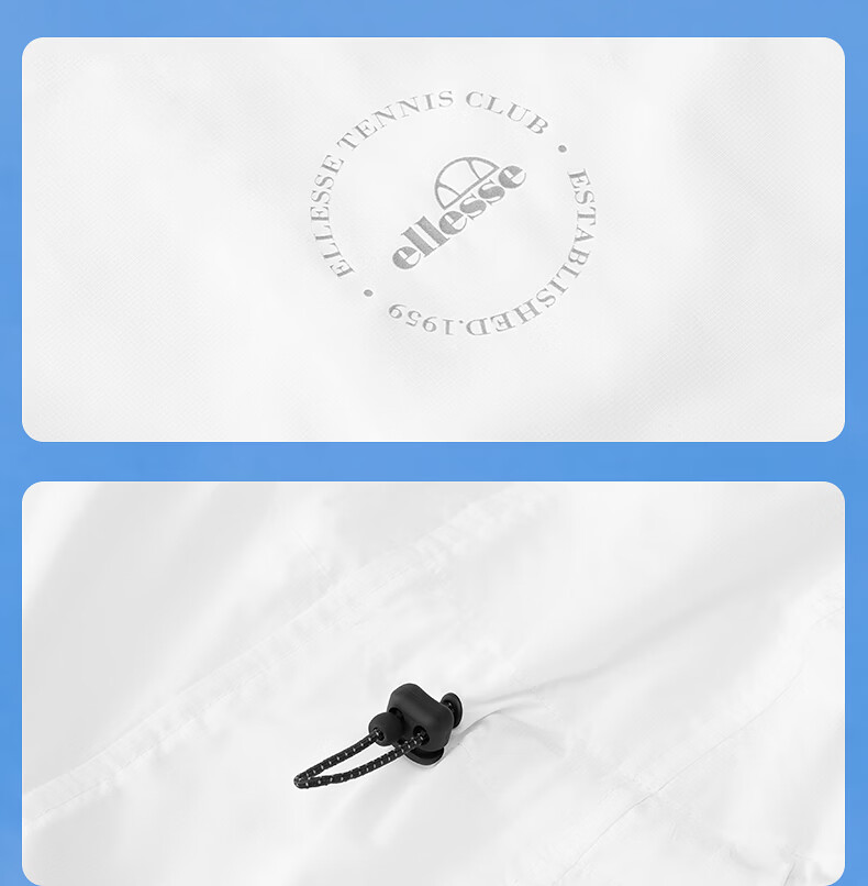 ellesse小贝壳官方防晒衣薄女夏季撞色立领连帽外套男户外运动 白色 S