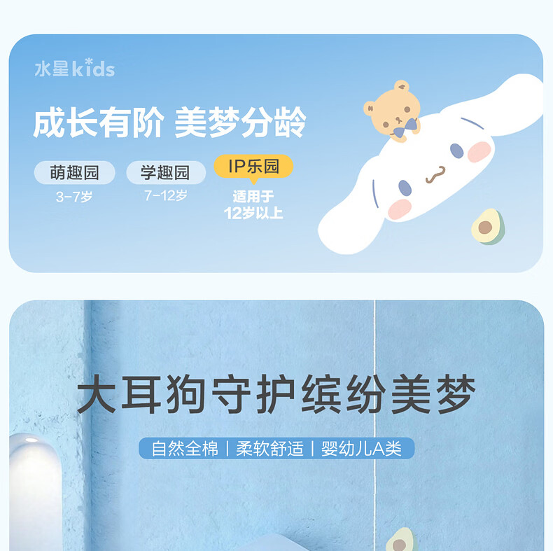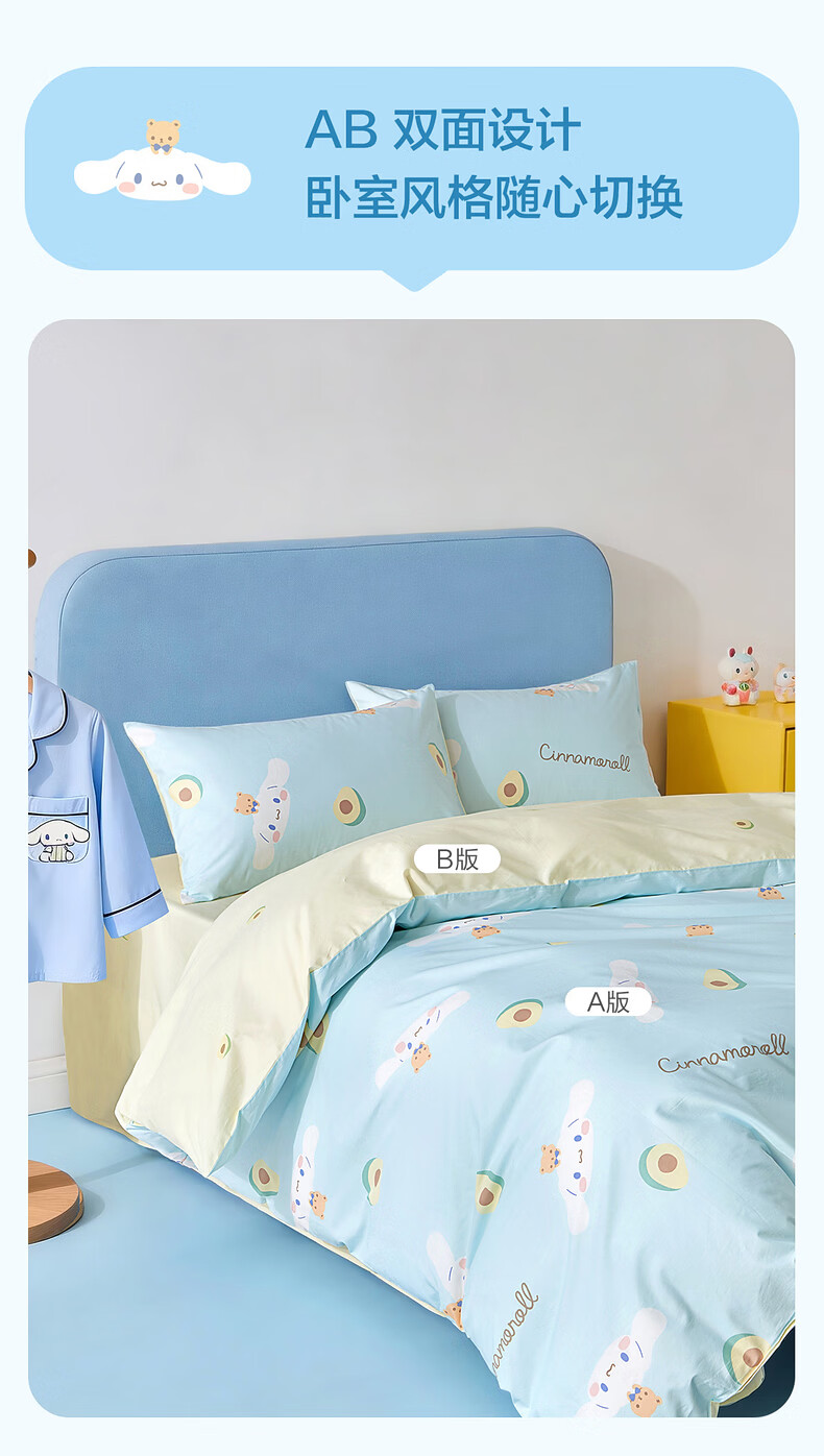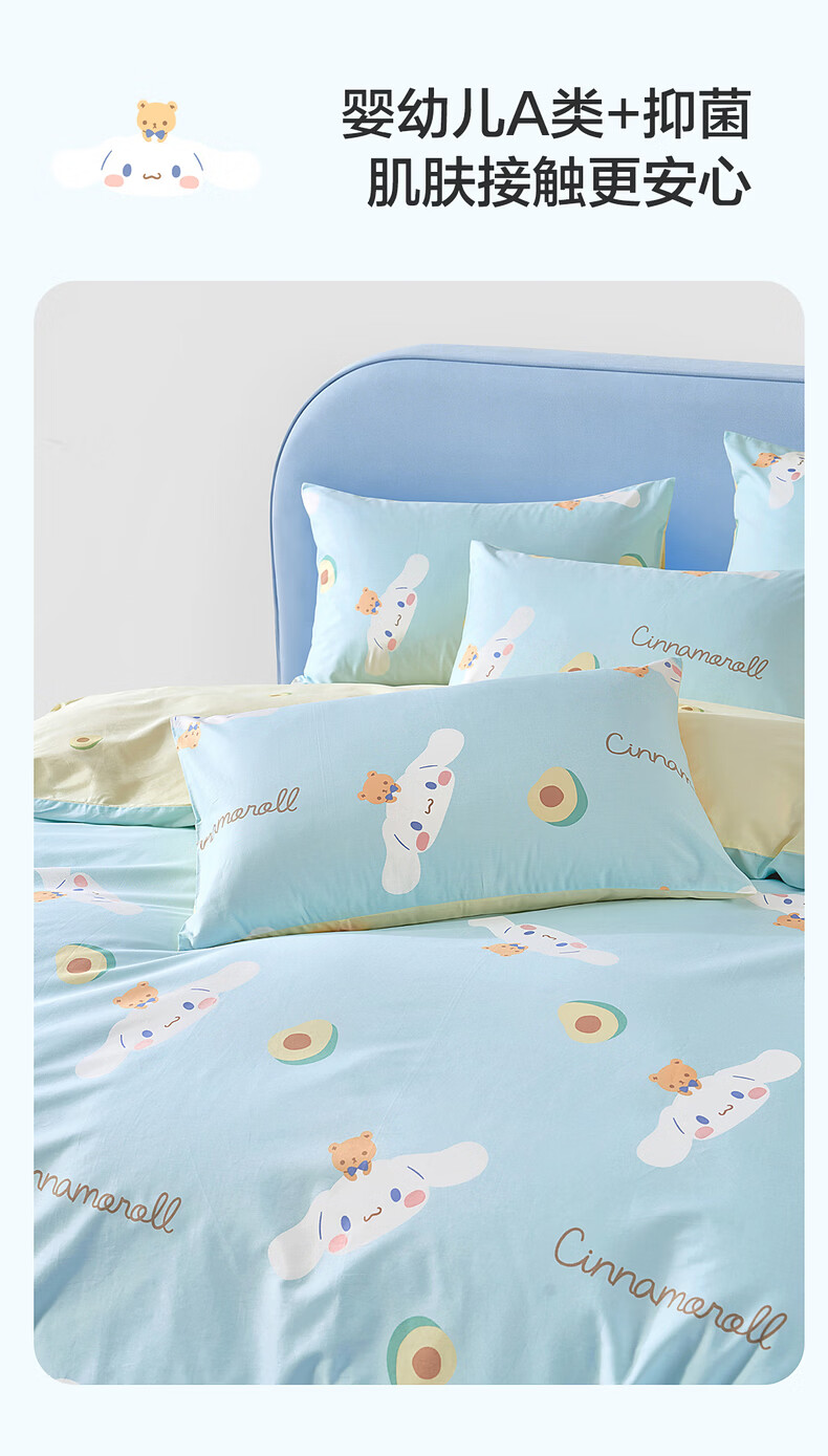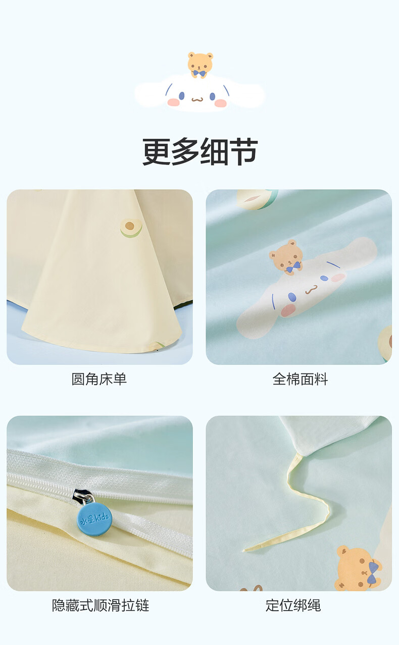 水星家纺四件套床上用品纯棉100%全棉婴幼儿A类儿童学生宿舍26年套件 夏享大耳狗 床单款 (被套150*210cm)