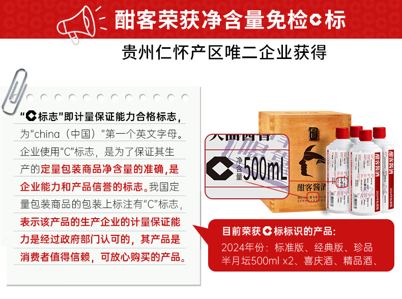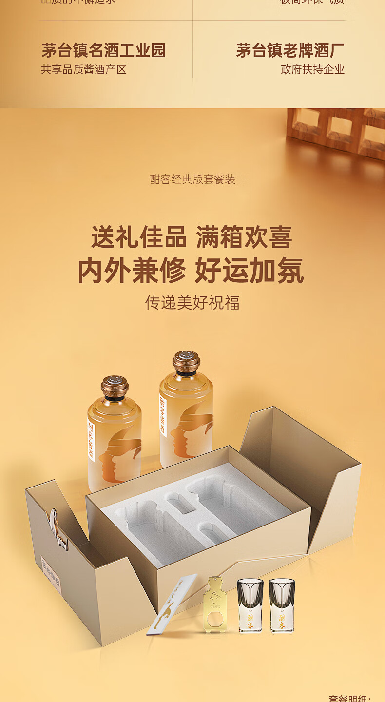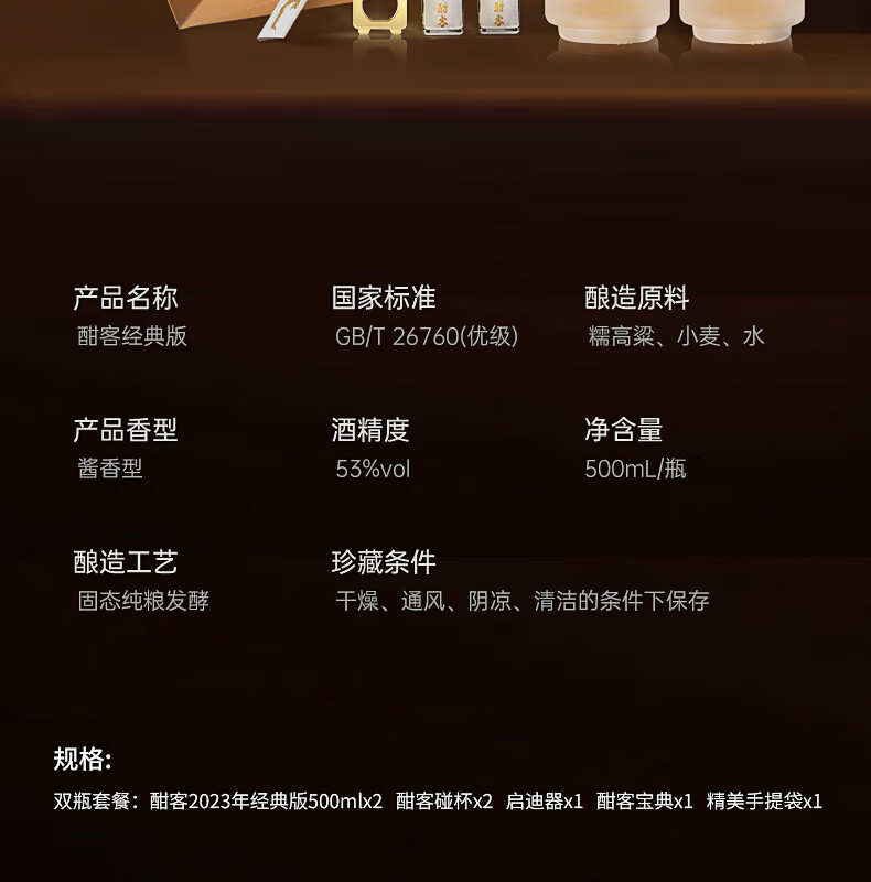 酣客 经典版 酱香型白酒 高端白酒礼盒 53度 100mL 1瓶 2023版
