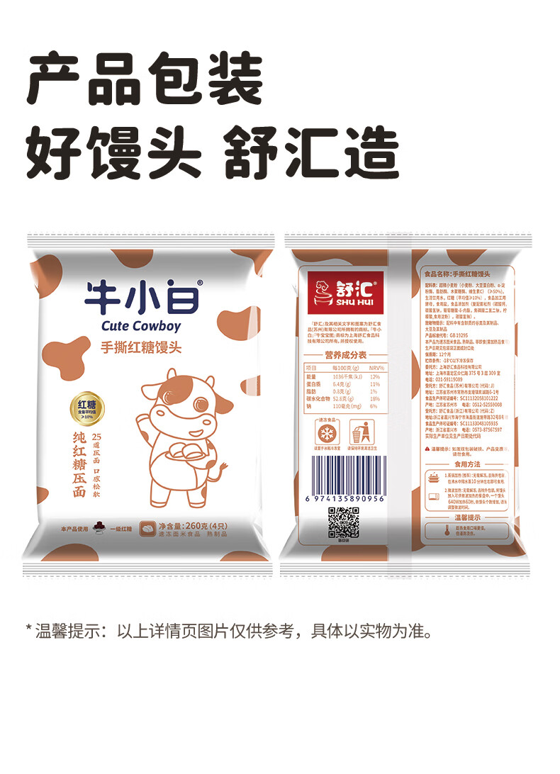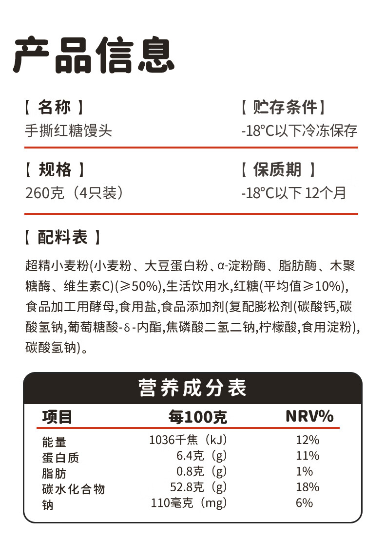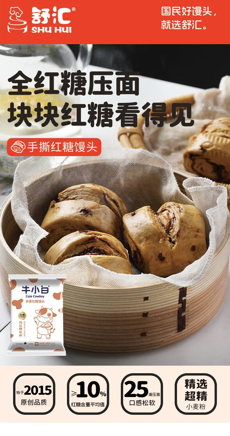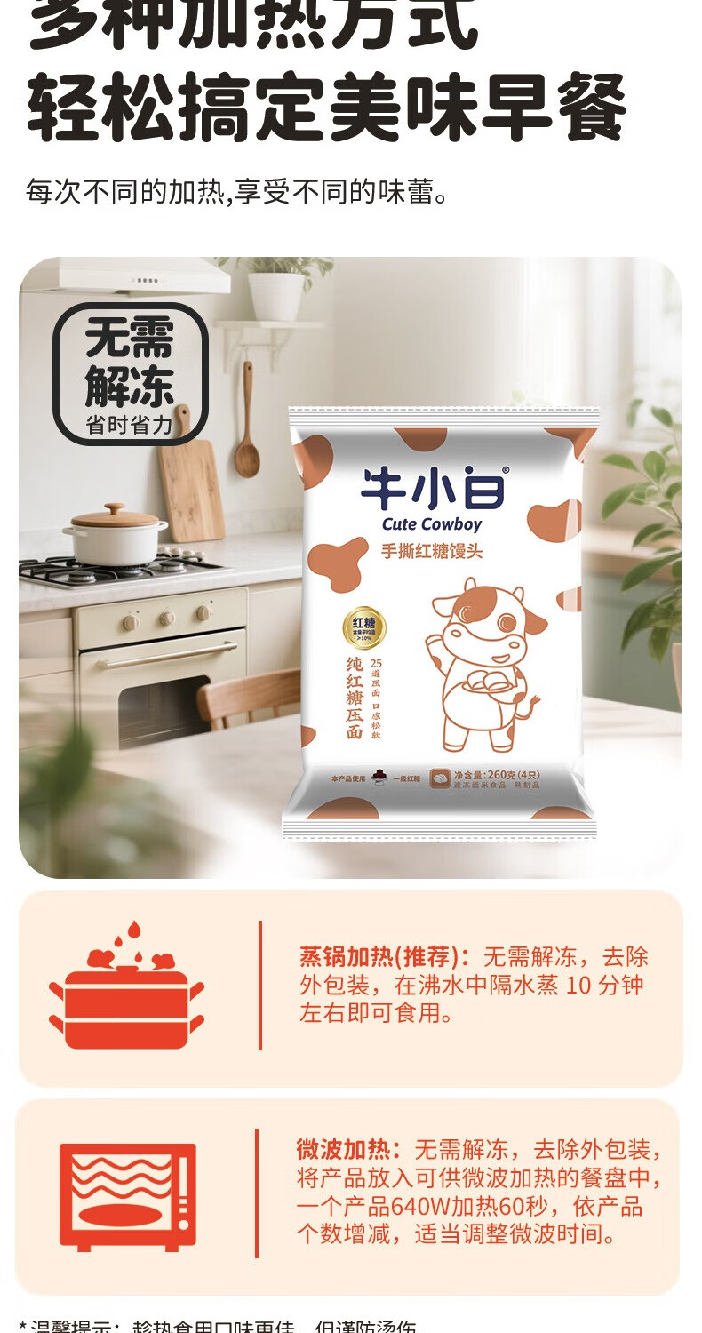 牛小白手撕红糖馒头 速冻面点方便速食宝宝孩子馒头4只装儿童营养早餐 牛小白手撕红糖馒头260g*5包