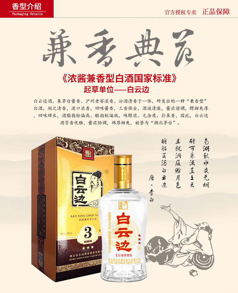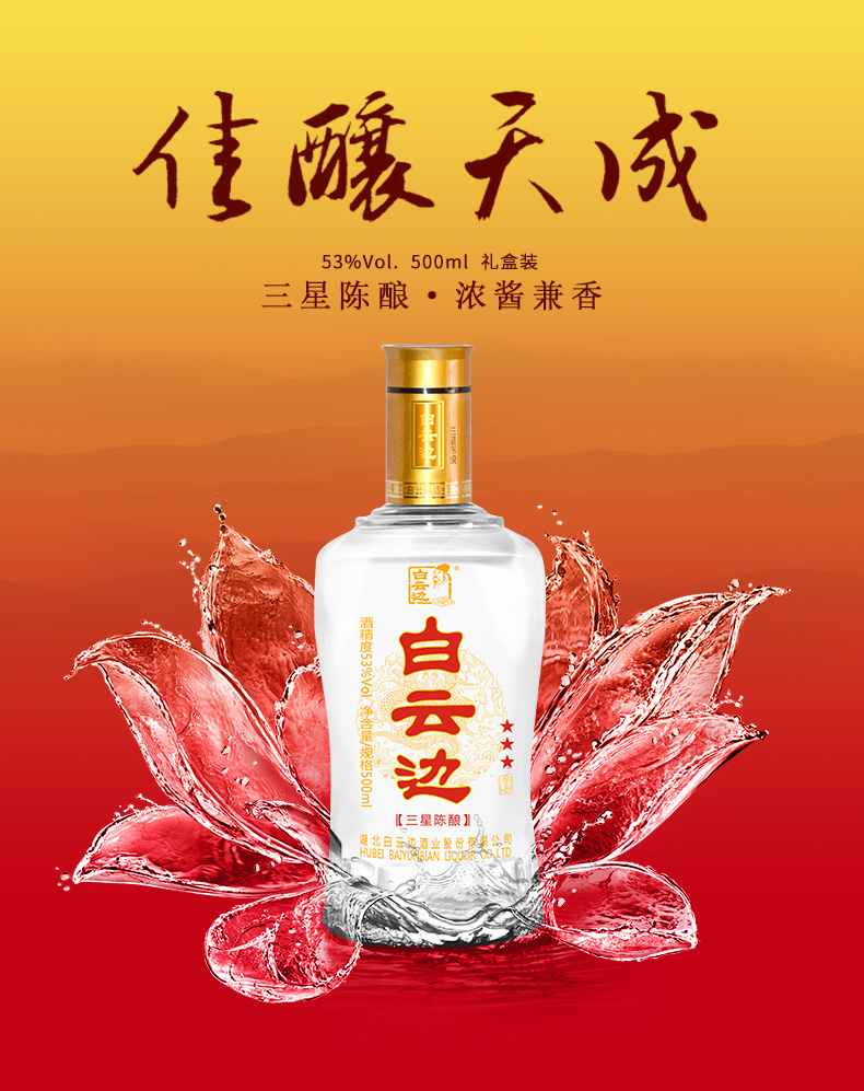 白云边白云边三星53度白酒 陈酿浓酱兼香型 醇香粮食酒 礼盒装 湖北名酒 500ml*6瓶 整箱装