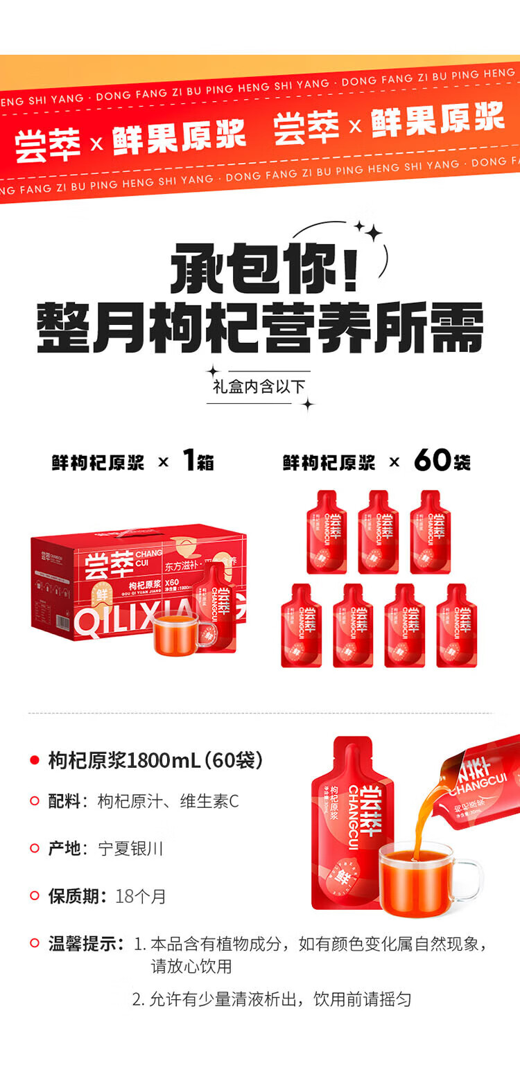 杞里香尝萃红黑枸杞原浆沙棘汁礼盒养生枸杞茶花青素宁夏头茬枸杞滋补品 【超值礼盒】黑红枸杞原浆1.8L/60袋