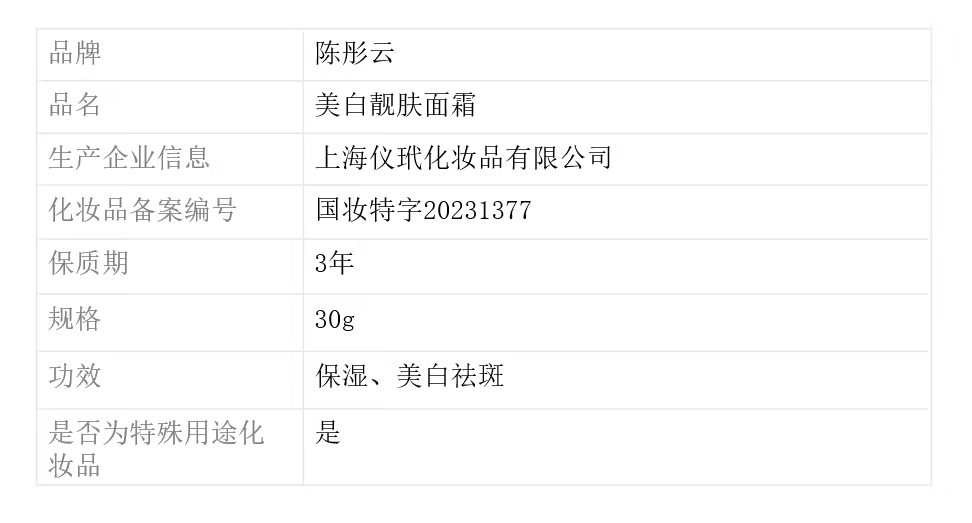 陈彤云靓肤面霜 30g 保湿 提亮补水提亮肤色 陈彤云美白面霜30g*1瓶