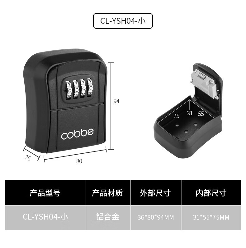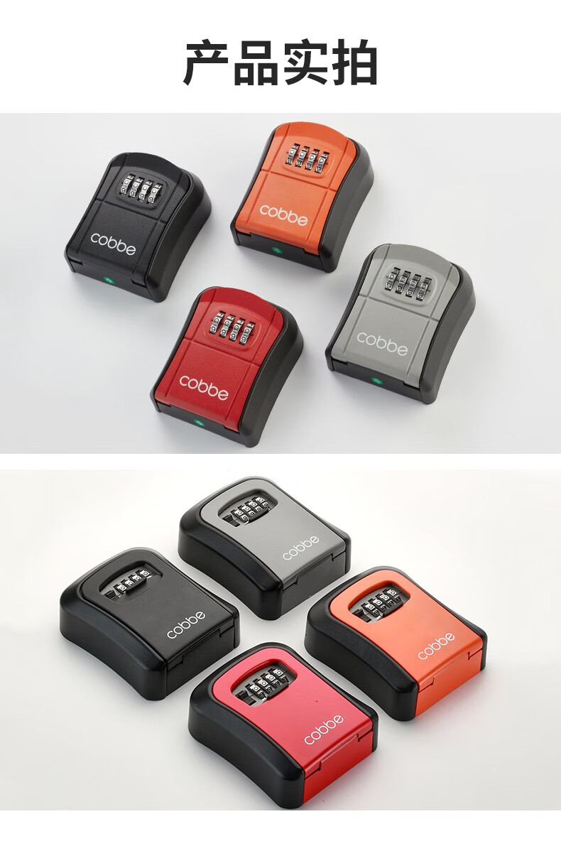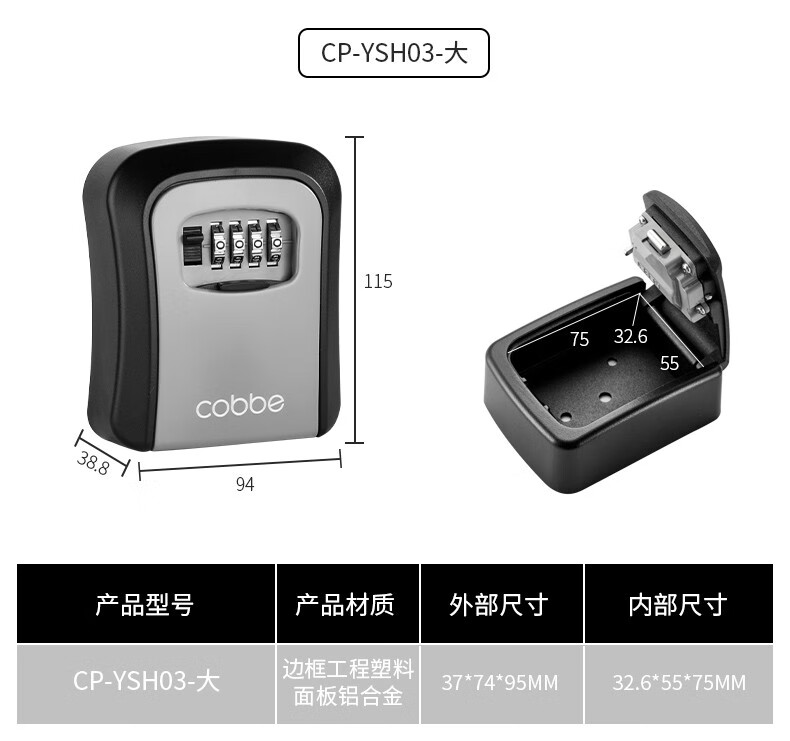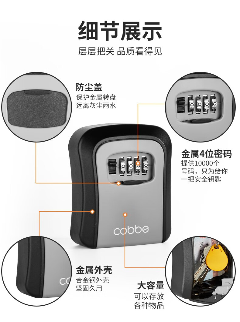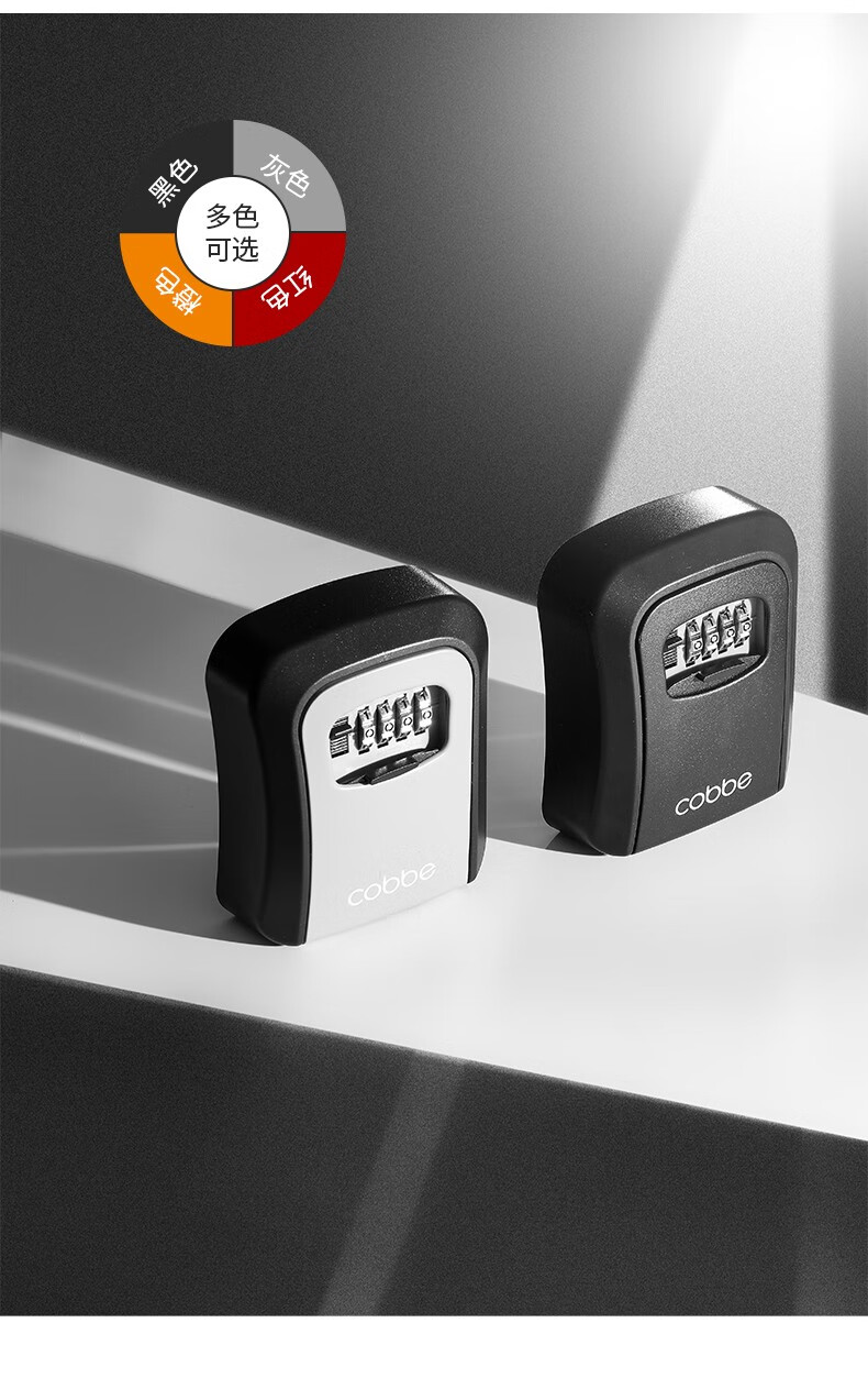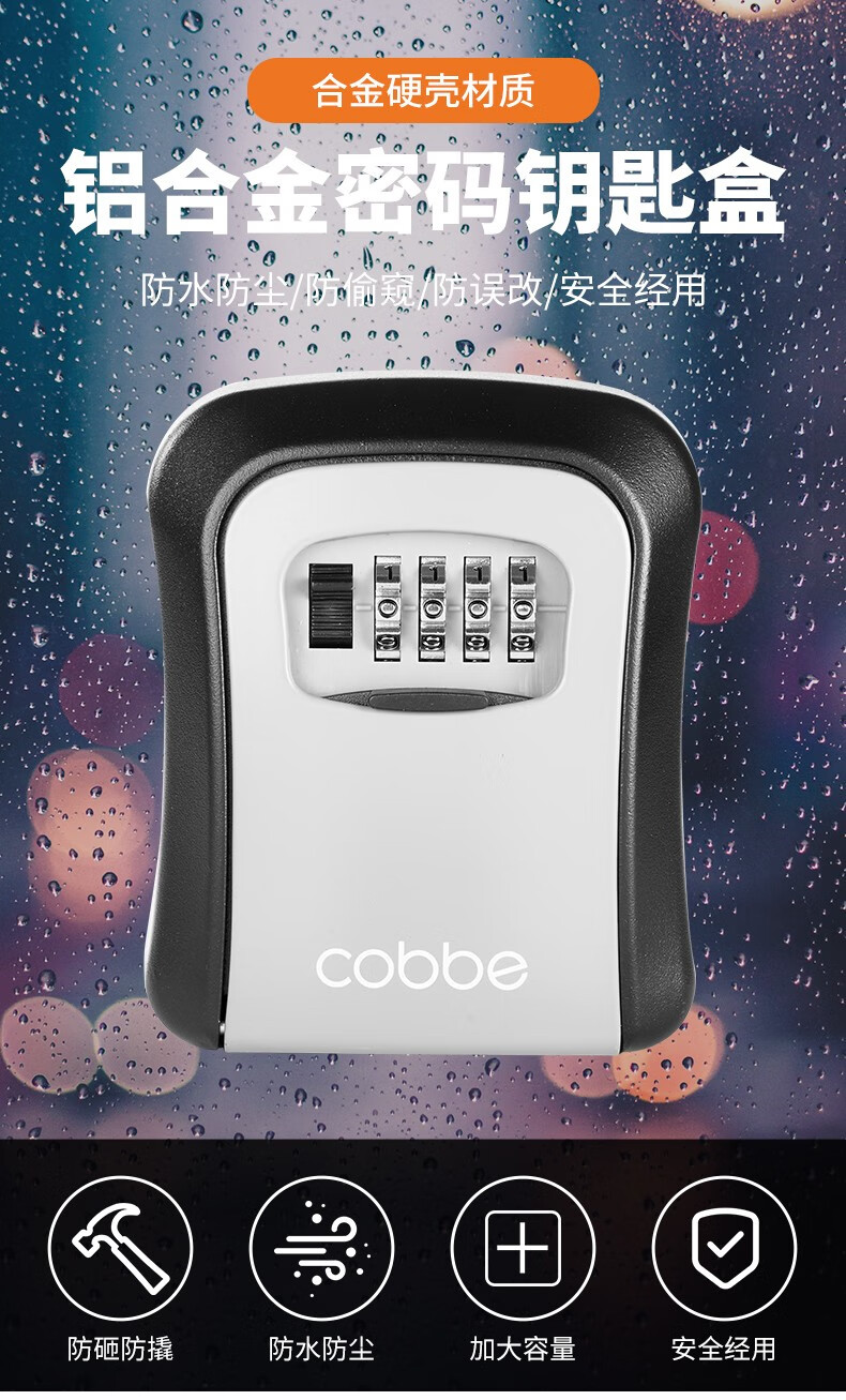 卡贝(cobbe)装修密码钥匙盒家用门口防盗门神器临时锁室外工地放钥匙盒子 铝合金款=黑灰(带防尘盖)