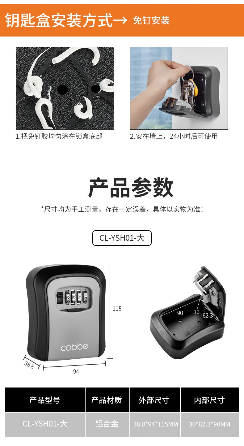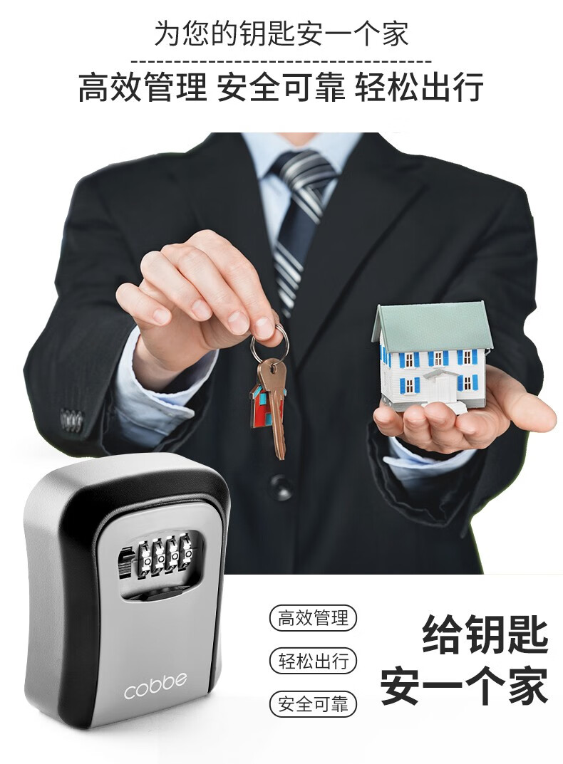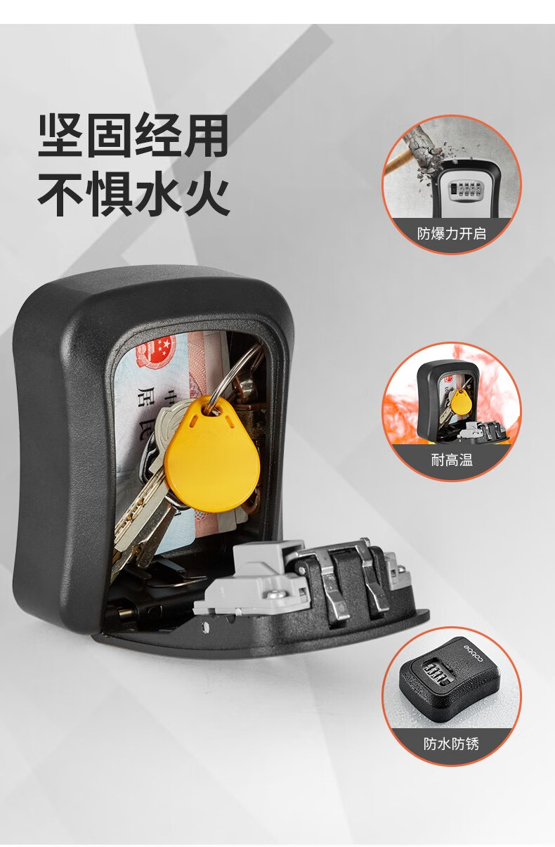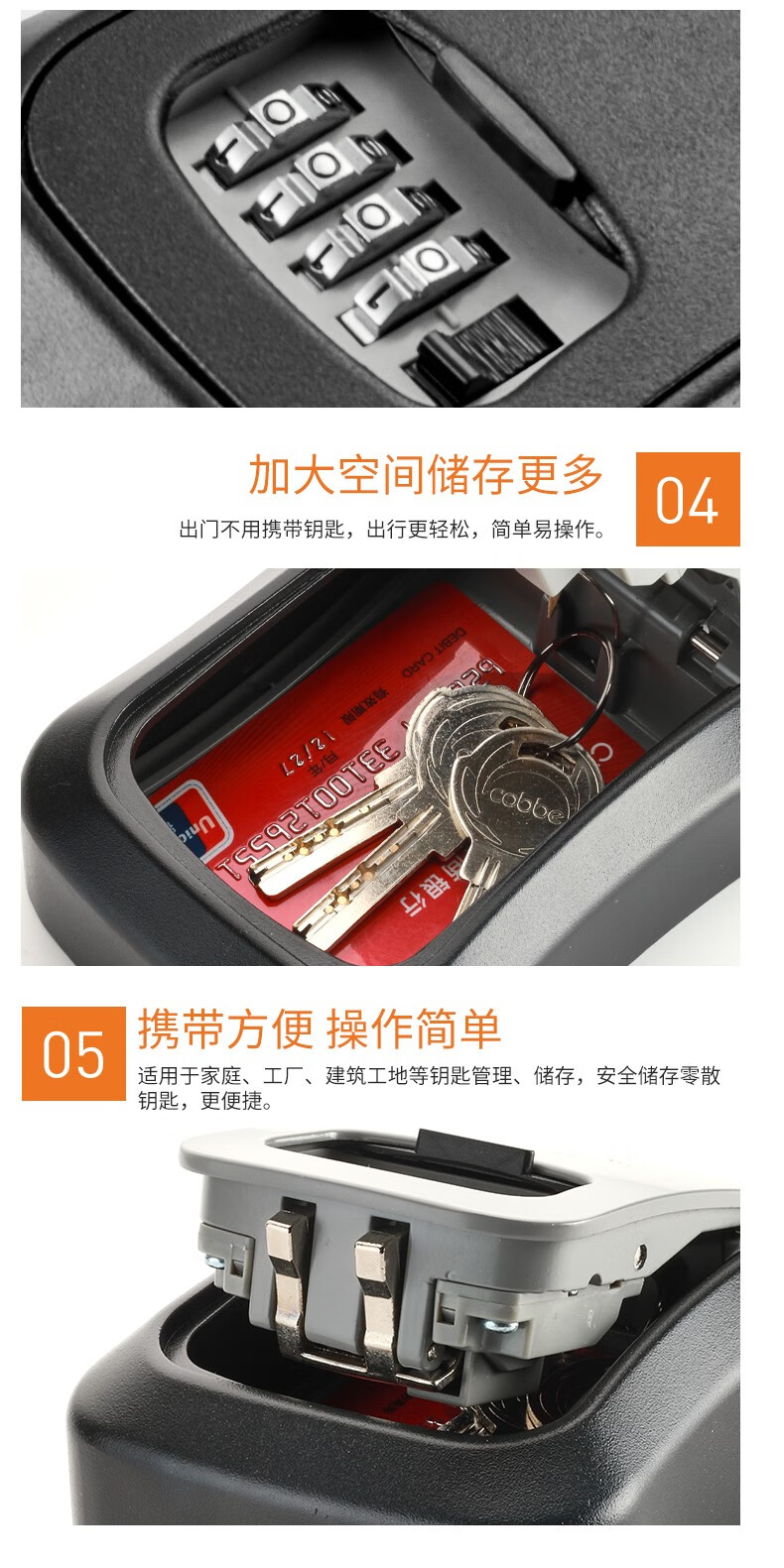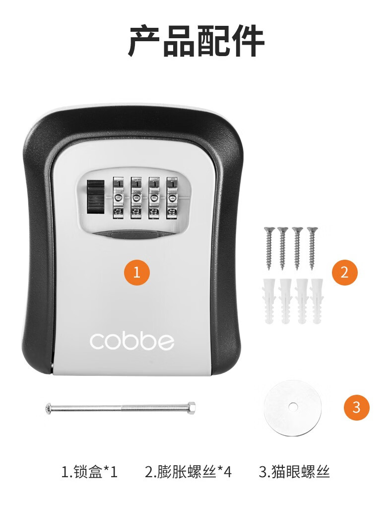 卡贝(cobbe)装修密码钥匙盒家用门口防盗门神器临时锁室外工地放钥匙盒子 铝合金款=黑灰(带防尘盖)
