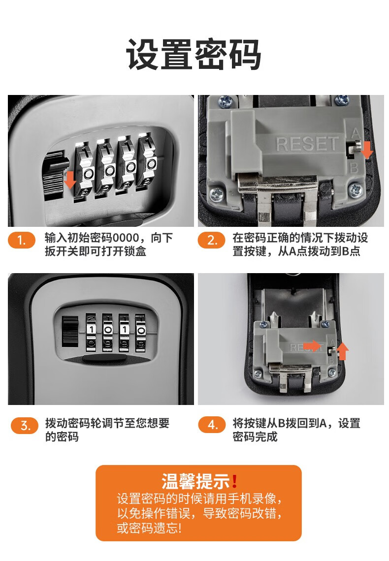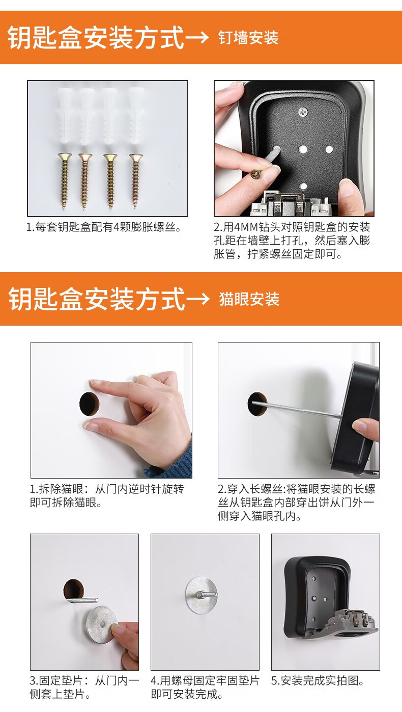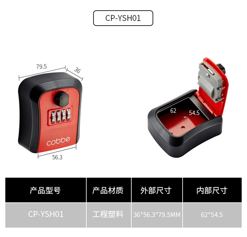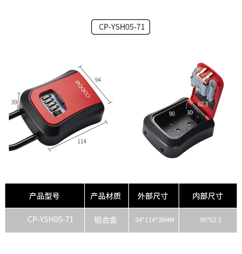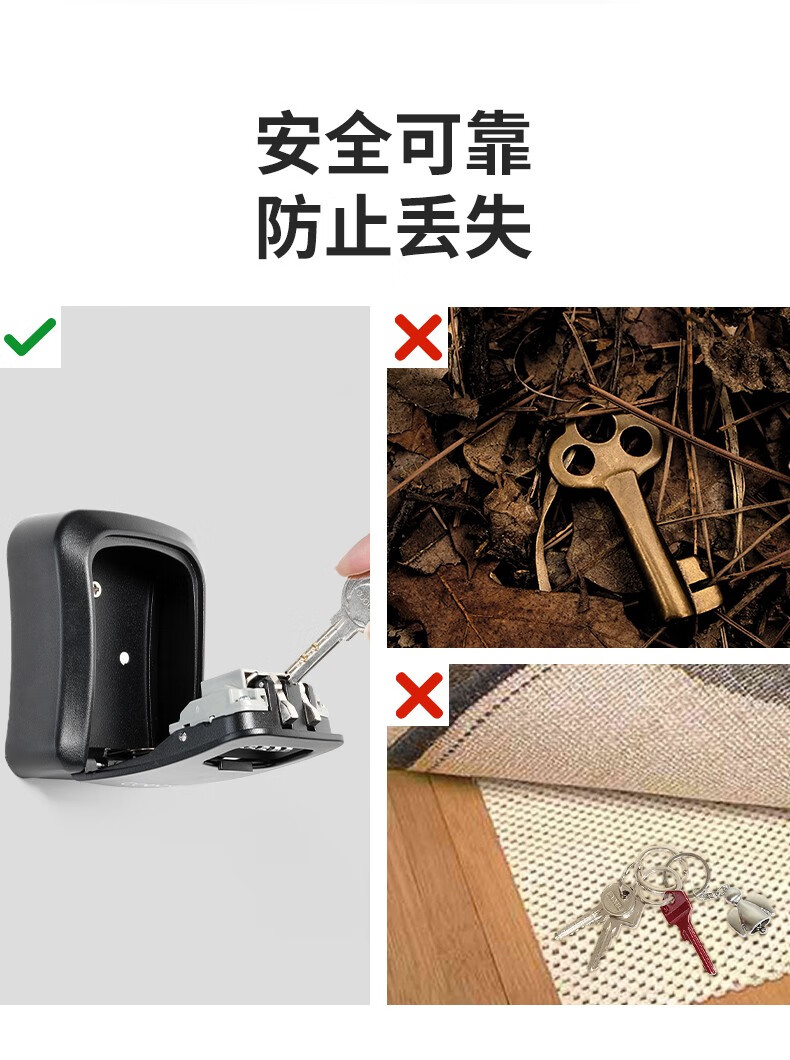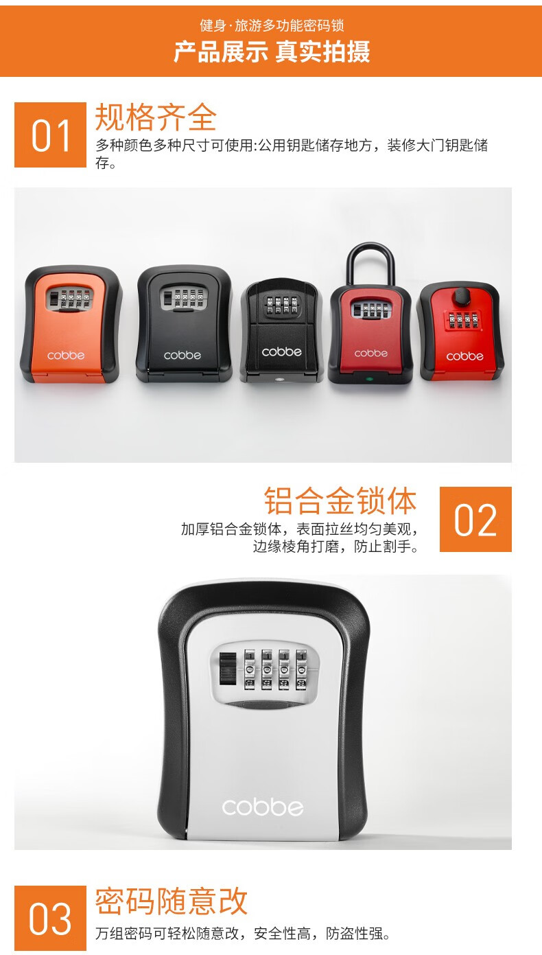卡贝(cobbe)装修密码钥匙盒家用门口防盗门神器临时锁室外工地放钥匙盒子 铝合金款=黑灰(带防尘盖)
