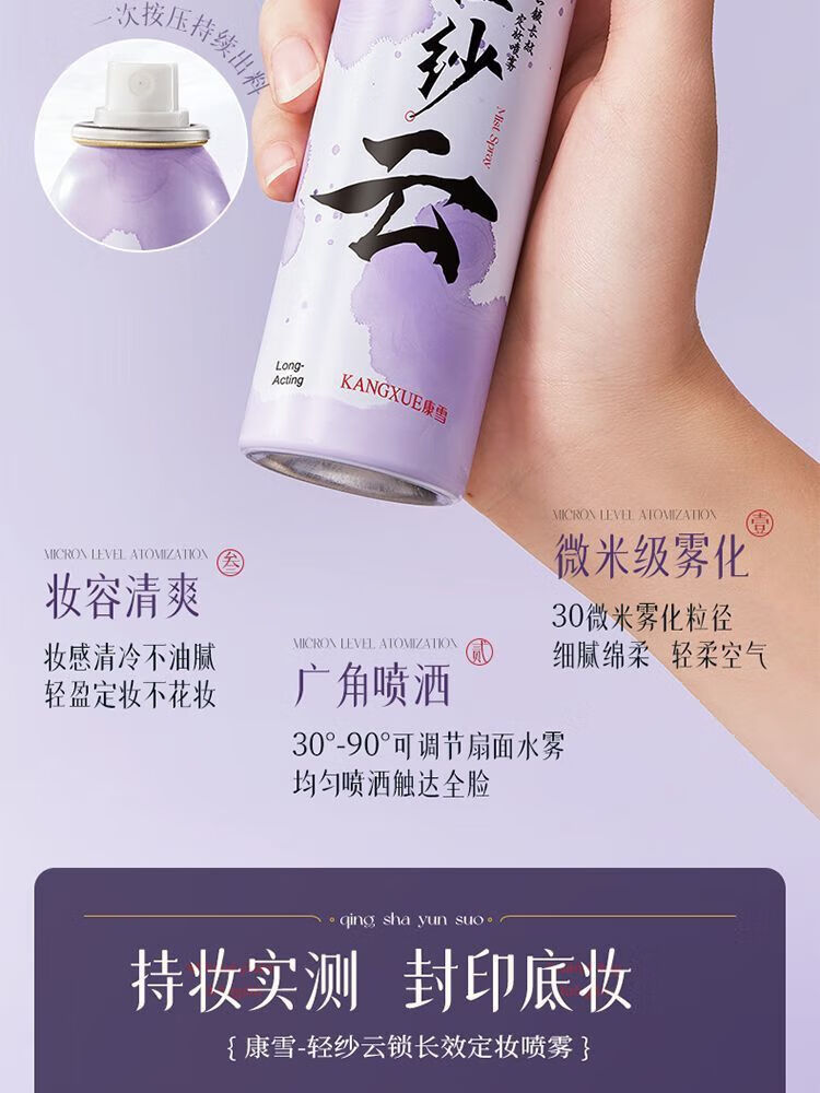 康雪轻纱云VC定妆喷雾长效锁色控油防水防汗持久不脱妆干油皮 1瓶 100mL