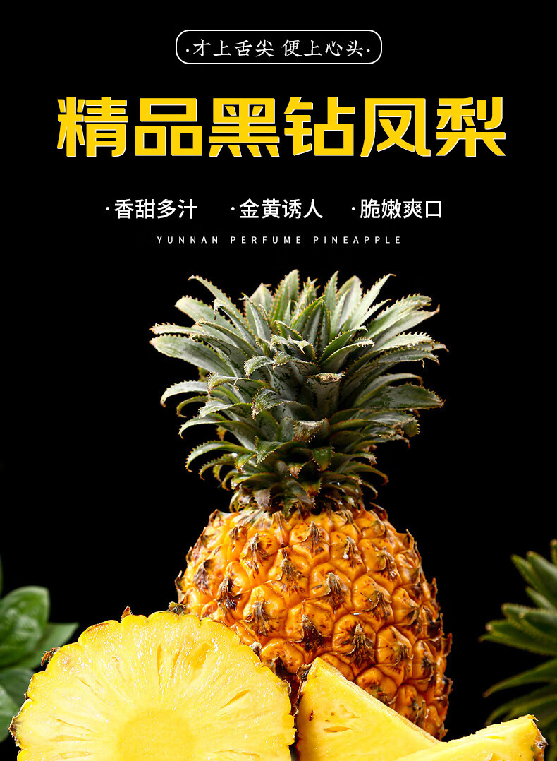 元珍鲜诚 源头直采黑钻凤梨当季新鲜水果菠萝源头采摘 含箱5斤净重4.5斤优选果(2-4个)