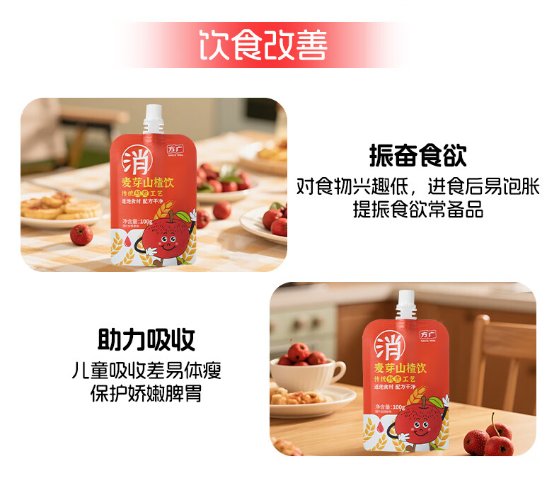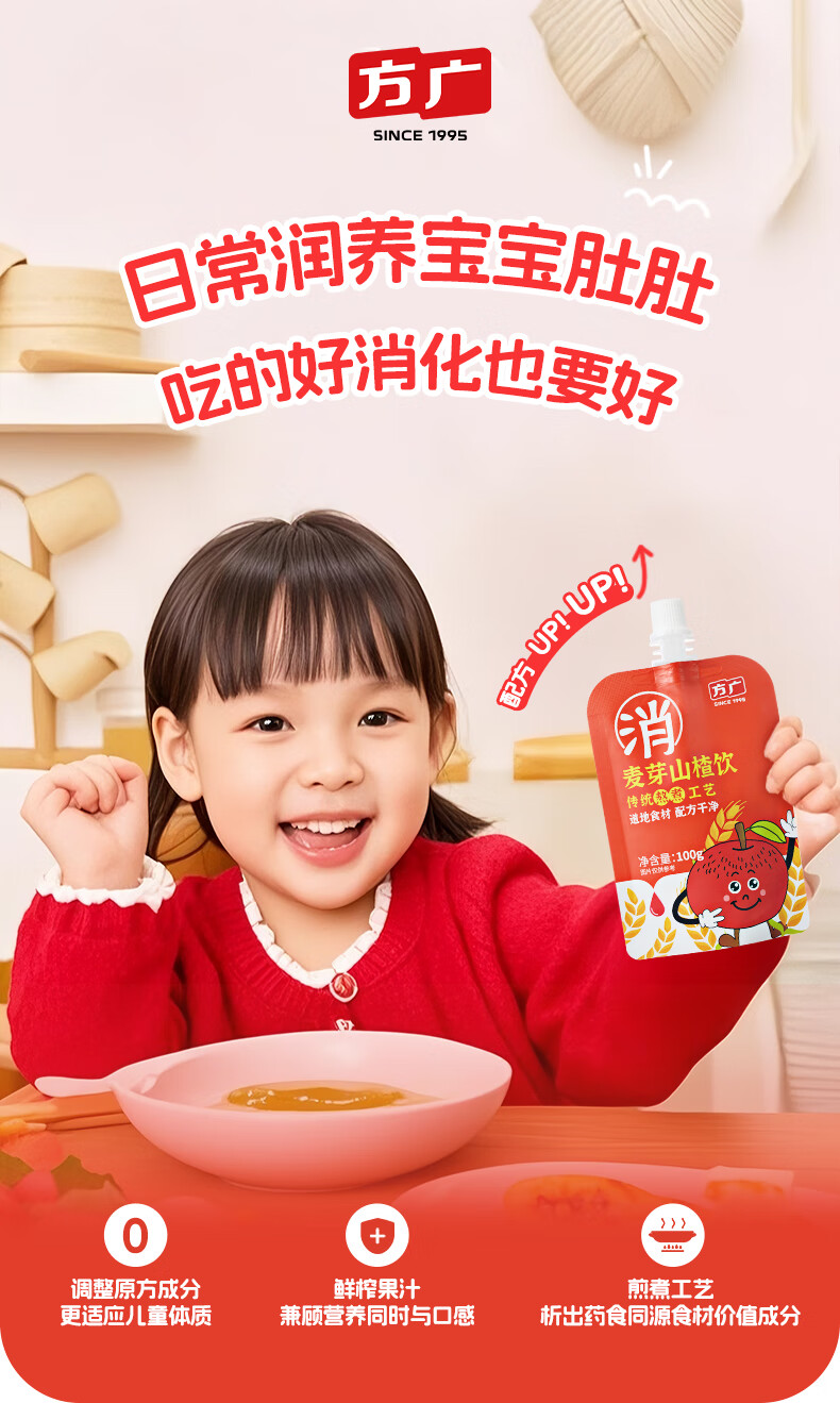 方广四神汤小方元养儿童果汁饮100g*10清火开胃儿童饮料夏天解暑 麦芽山楂饮 100g*10袋