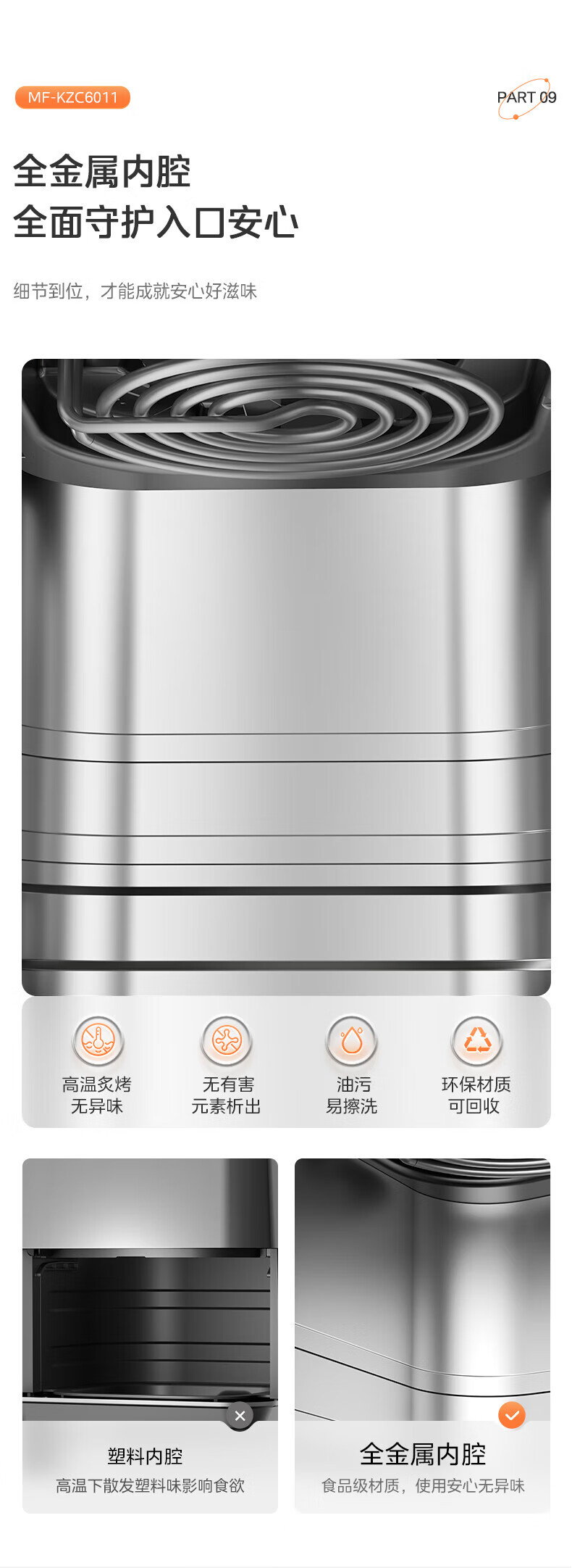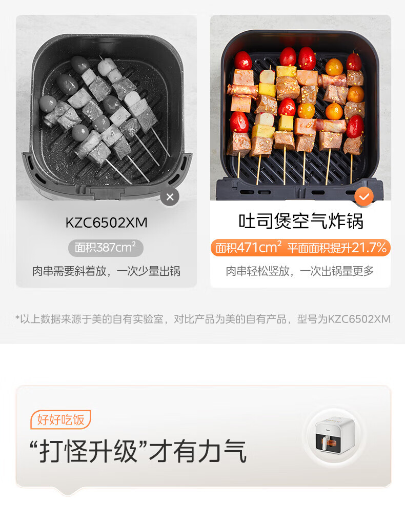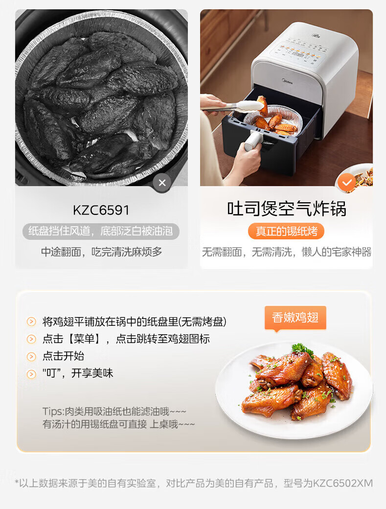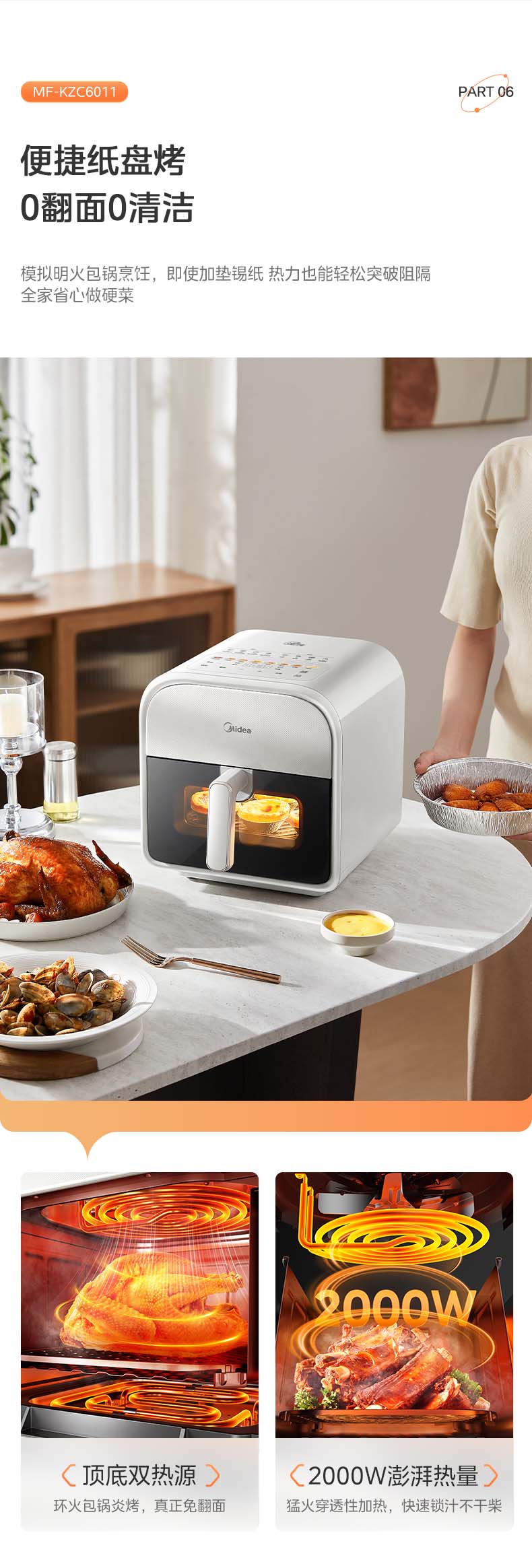 美的(Midea)炎烤空气炸锅触控免翻面 环火上下双热源 家用宽口实用大容量6L 可视大视窗金属内腔 MF-KZC6011 【环火炎烤】 6L