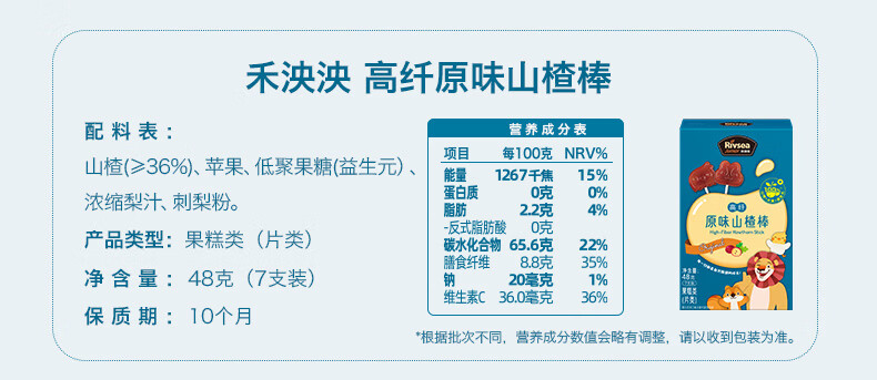 禾泱泱高纤原味山楂棒48g儿童宝宝零食富含膳食纤维水果条