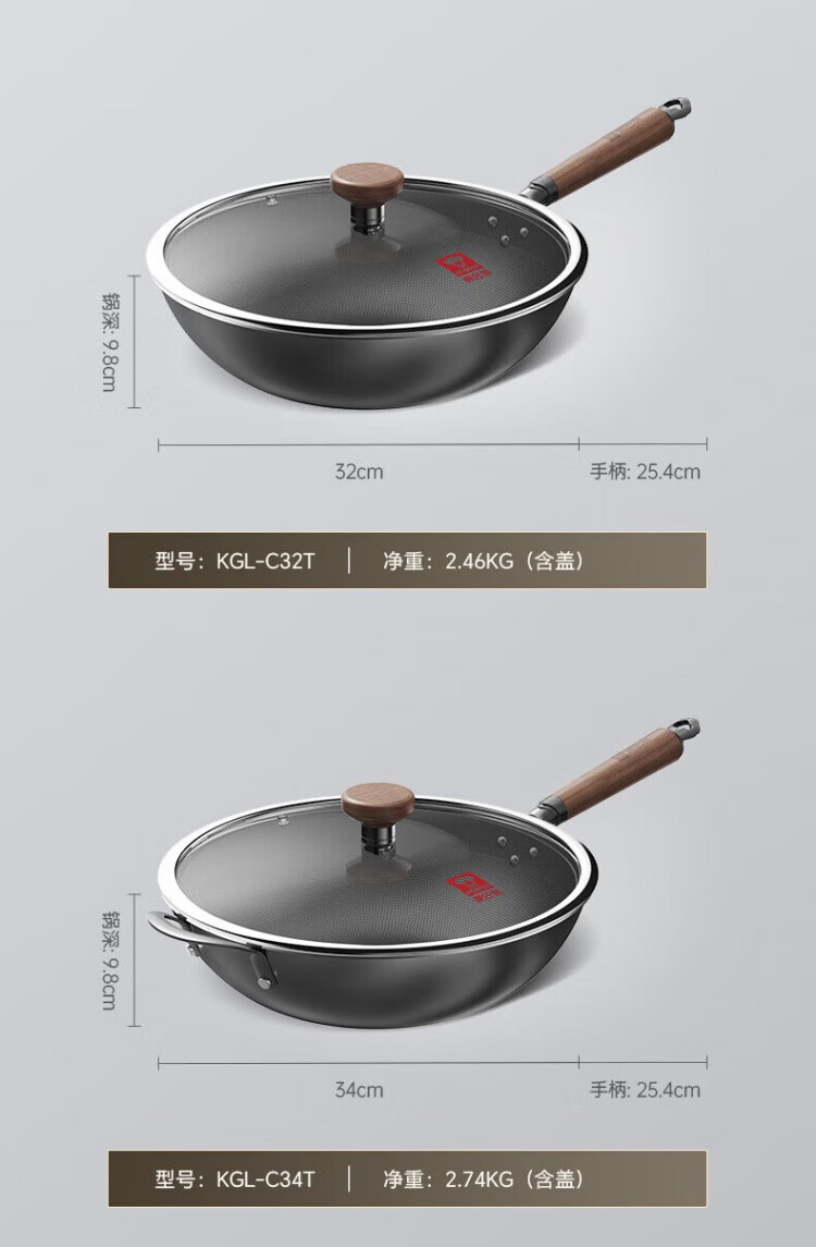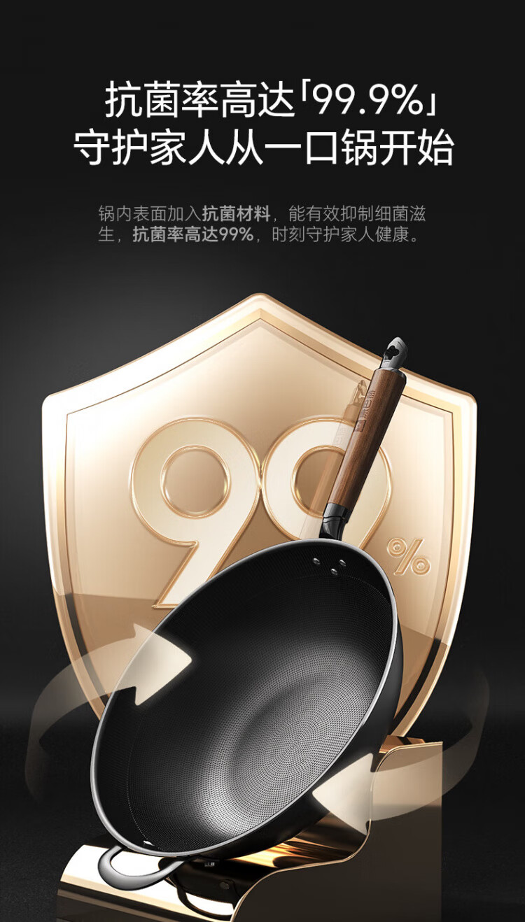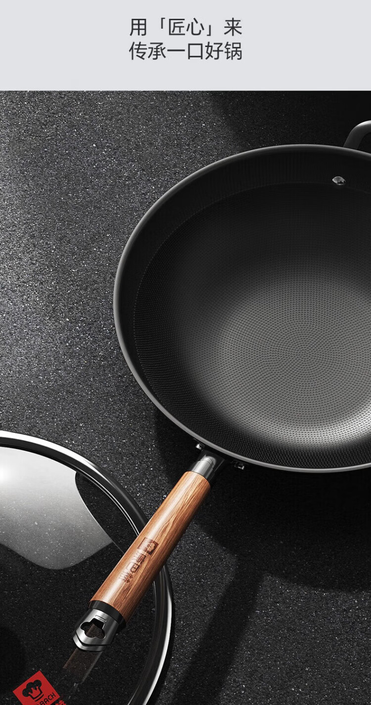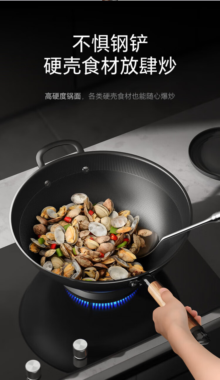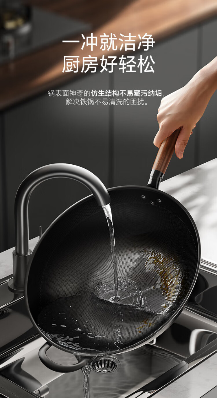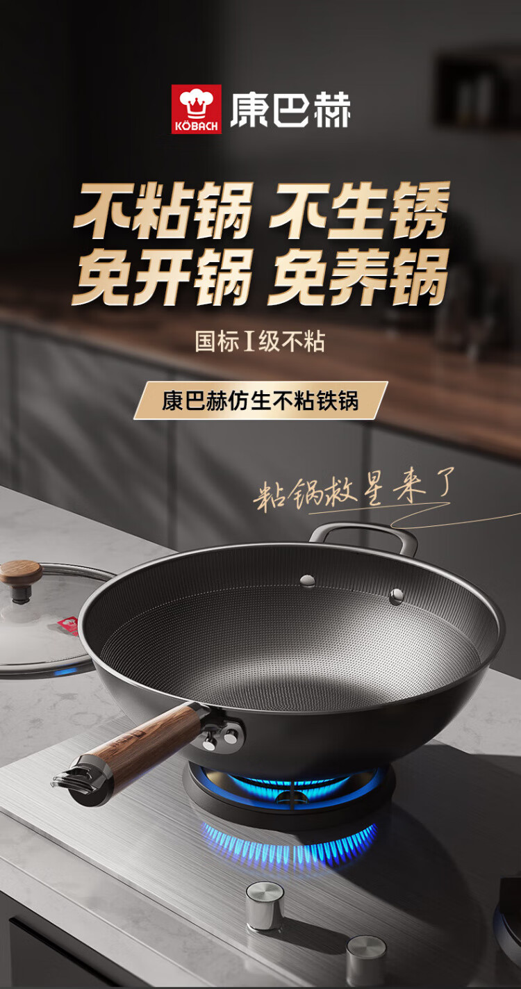 康巴赫炒锅不粘锅仿生抗菌铁锅家用平底炒菜锅【厨房好物】 【0涂层免开锅】 32cm