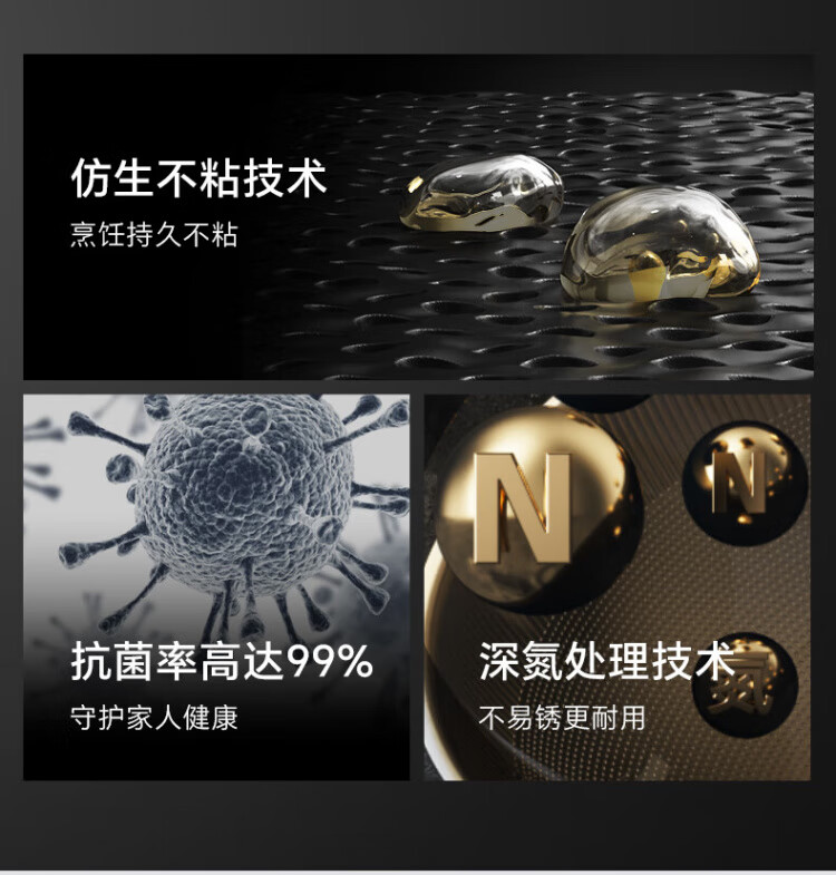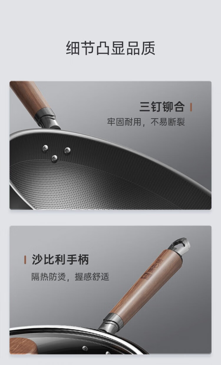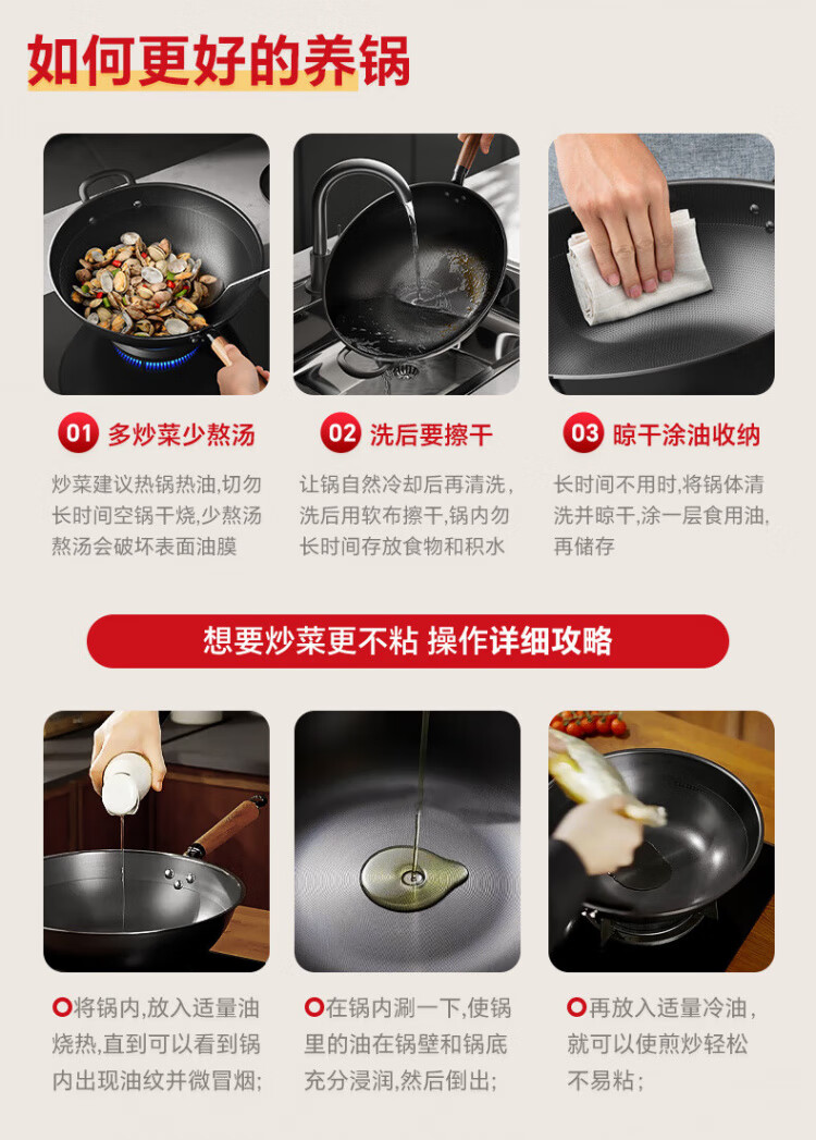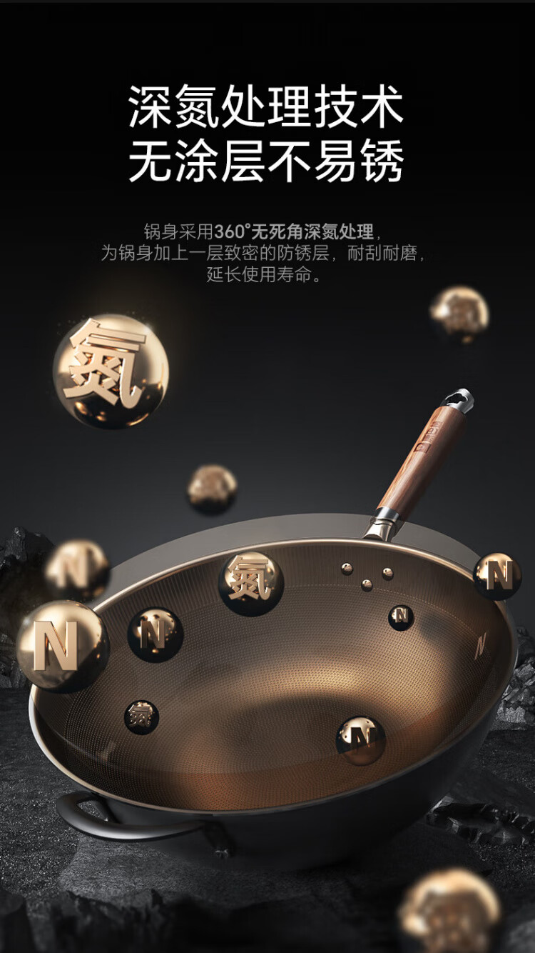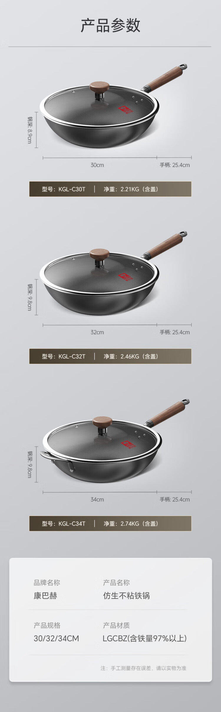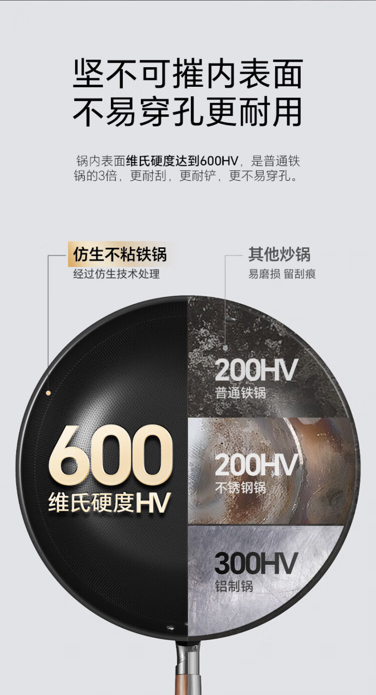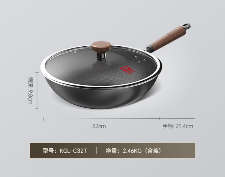 康巴赫炒锅不粘锅仿生抗菌铁锅家用平底炒菜锅【厨房好物】 【0涂层免开锅】 32cm
