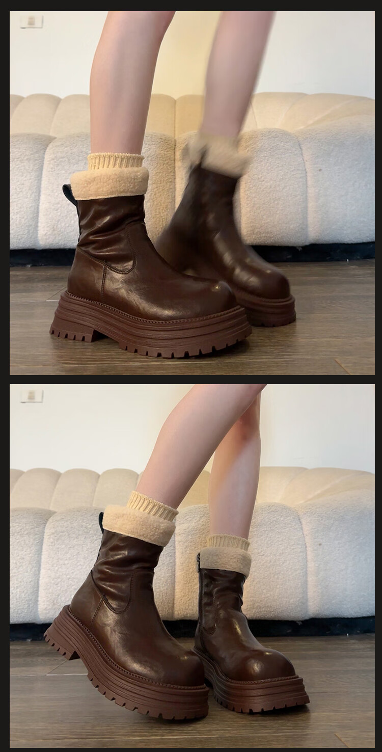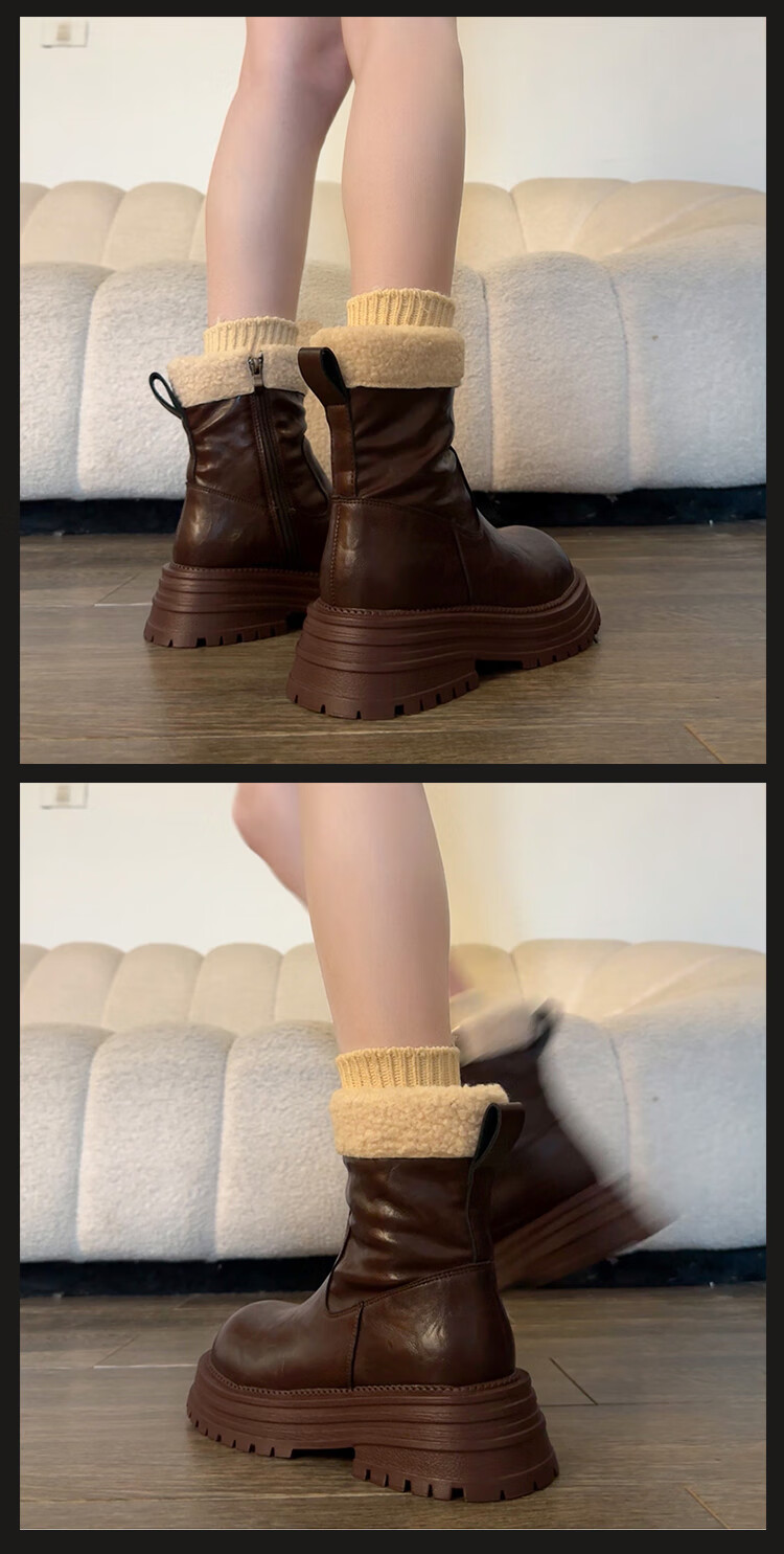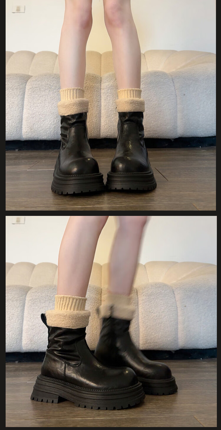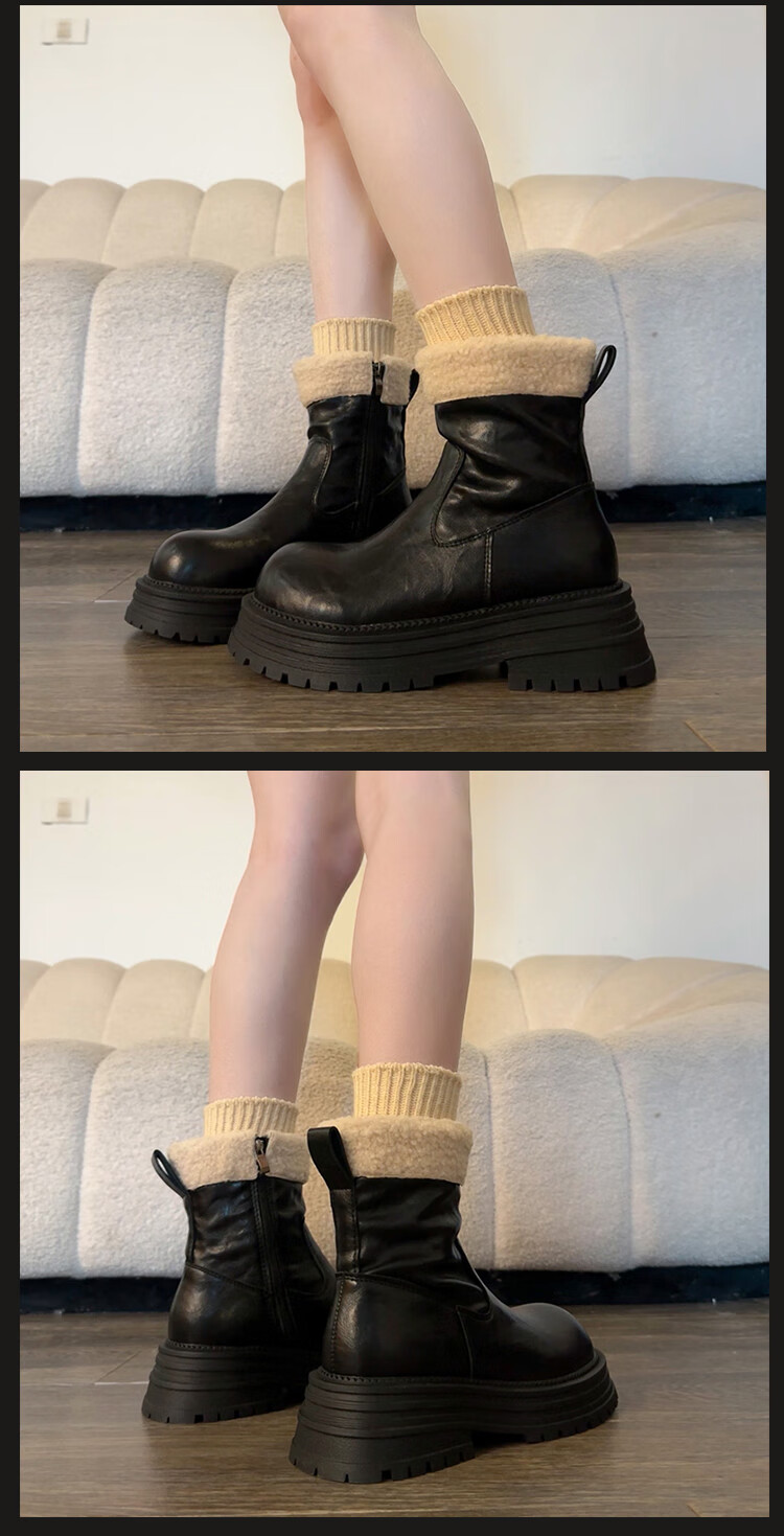 稻草人(MEXICAN)厚底加绒保暖马丁靴女2026新款冬季防水防滑雪地靴棉鞋瘦瘦靴短靴 黑色.【真皮】 【保暖指数100%】 39