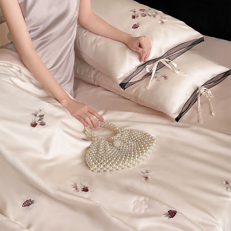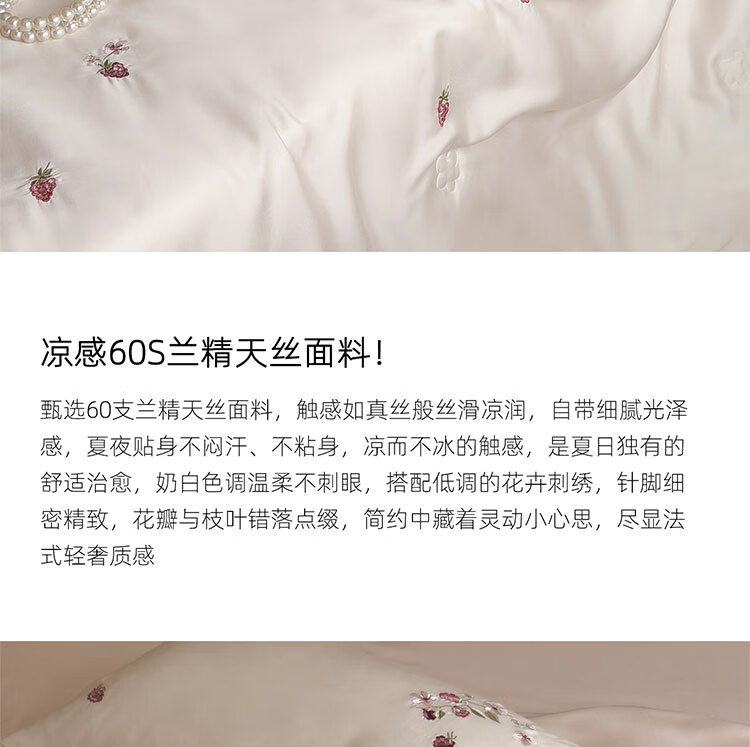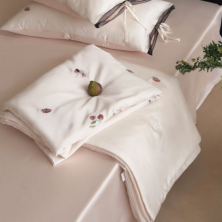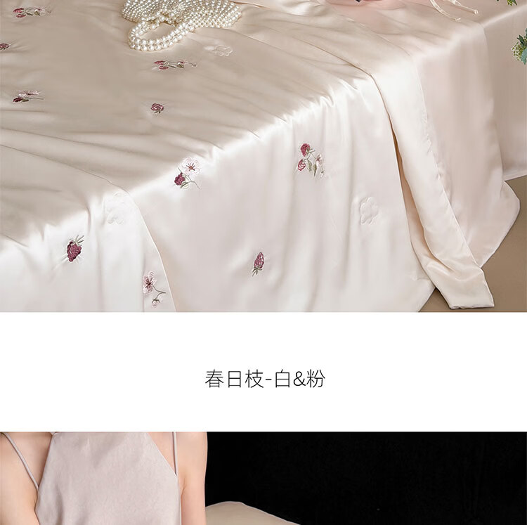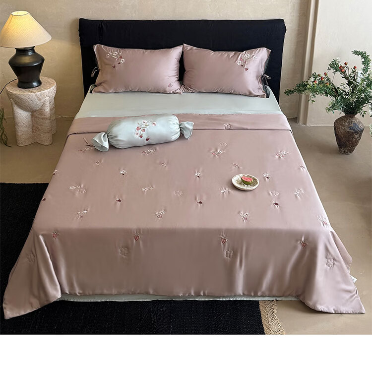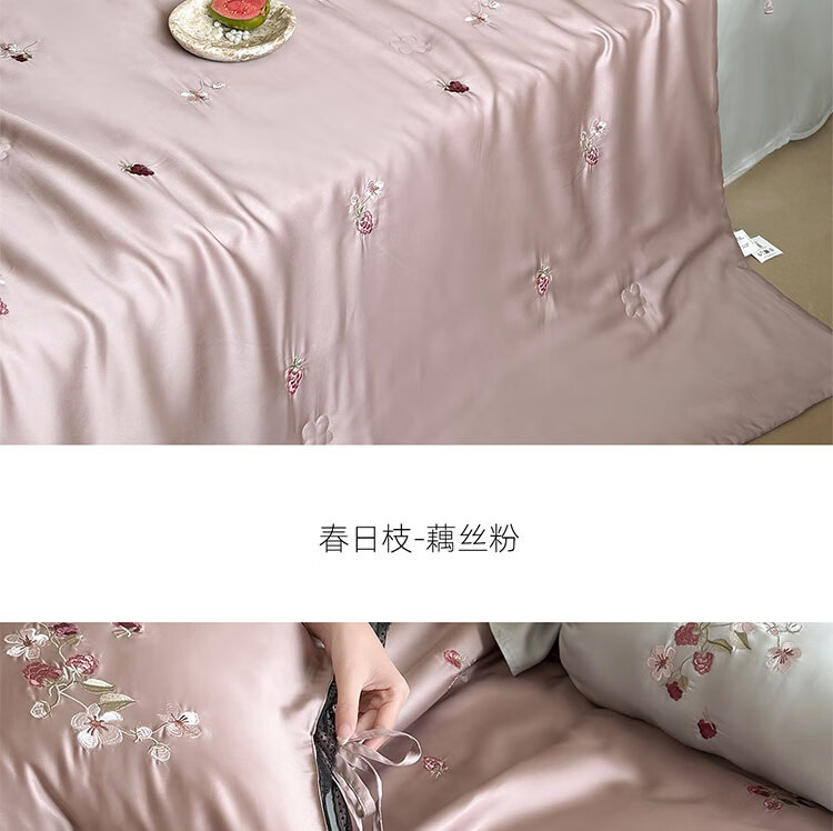 ROLAND LIVE夏季凉感60兰精天丝刺绣夏被卧室空调被可水洗夏凉被双人薄被子 LB 天丝夏被-春日枝藕丝粉 单夏被220cm*240cm