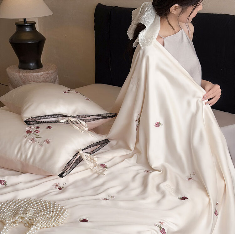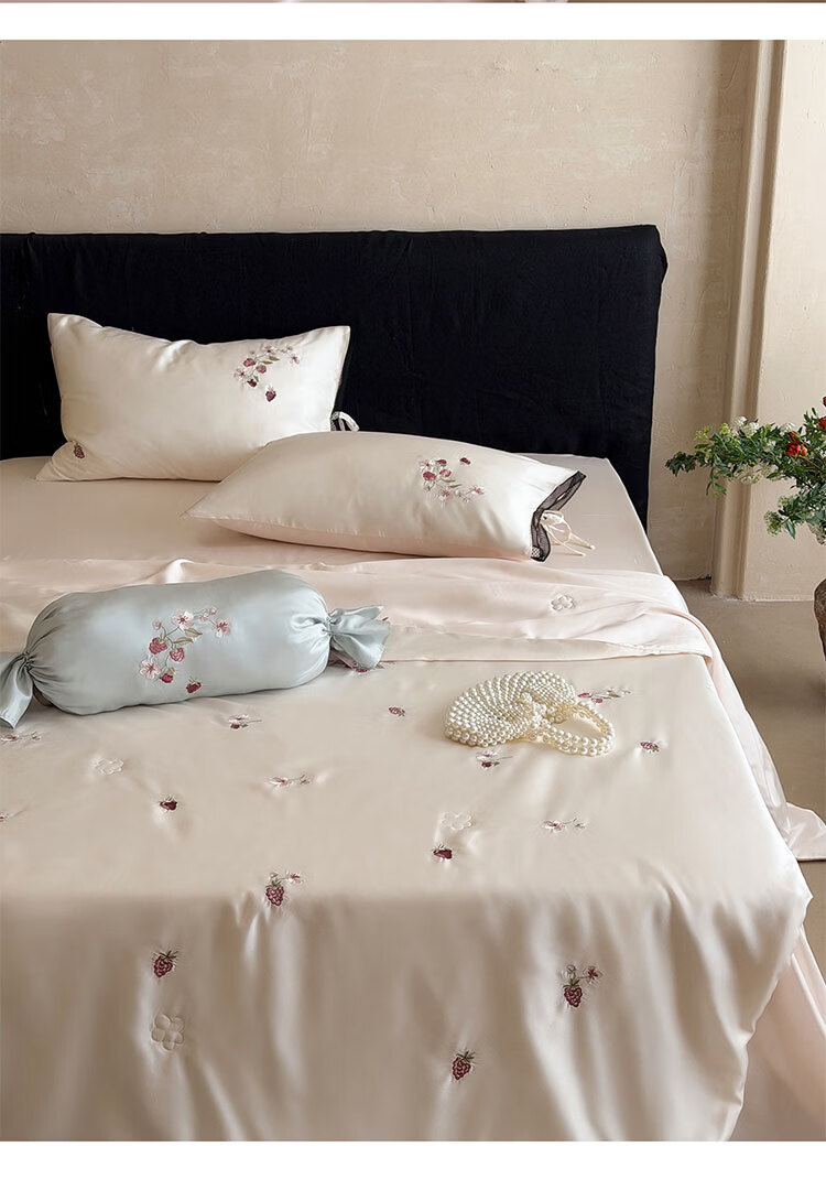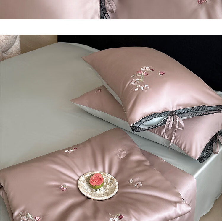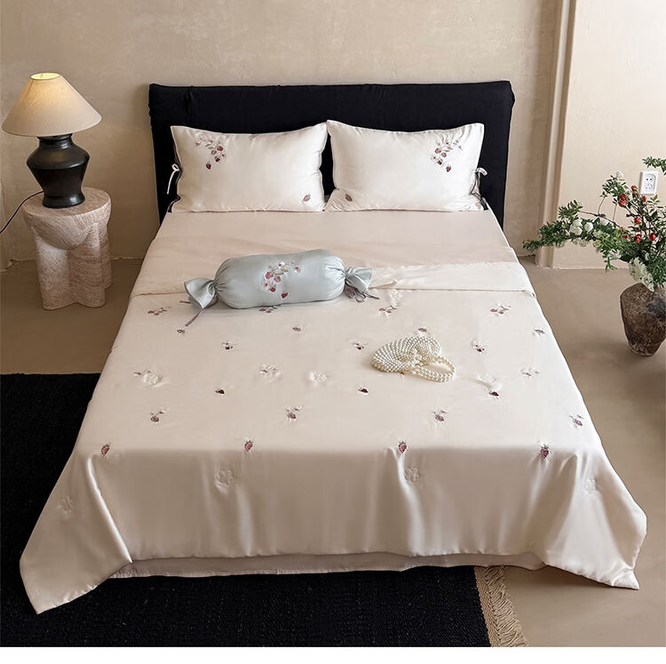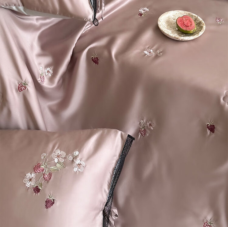 ROLAND LIVE夏季凉感60兰精天丝刺绣夏被卧室空调被可水洗夏凉被双人薄被子 LB 天丝夏被-春日枝藕丝粉 单夏被220cm*240cm
