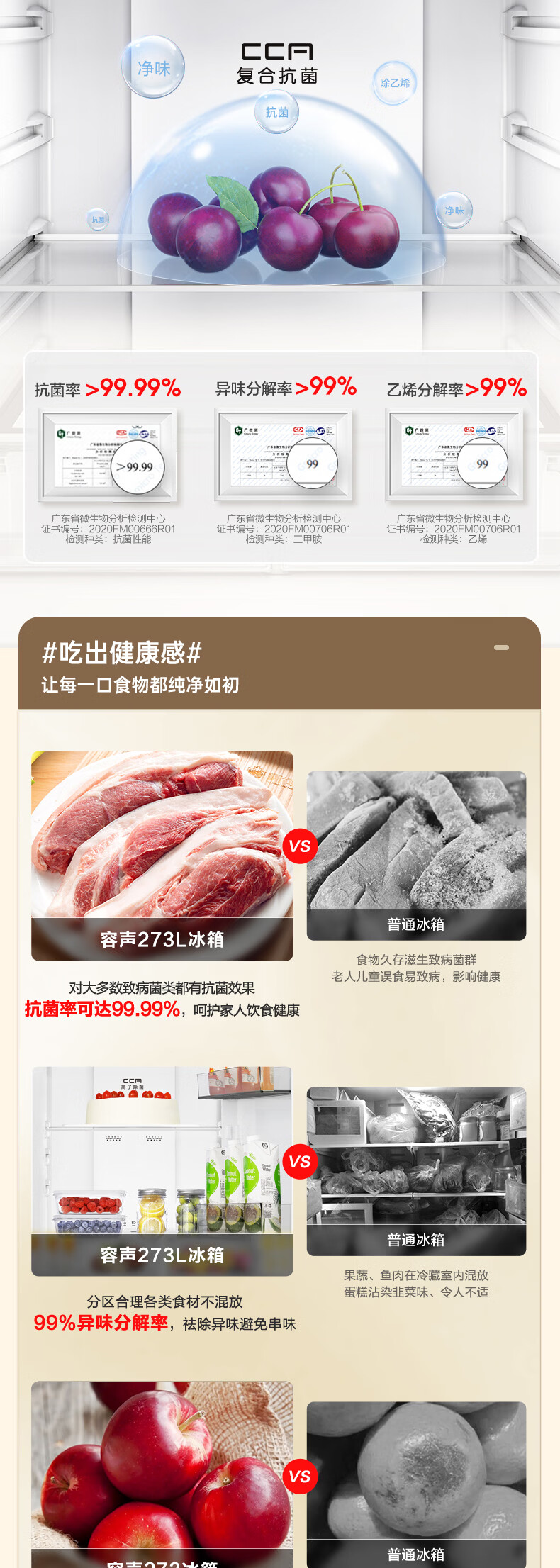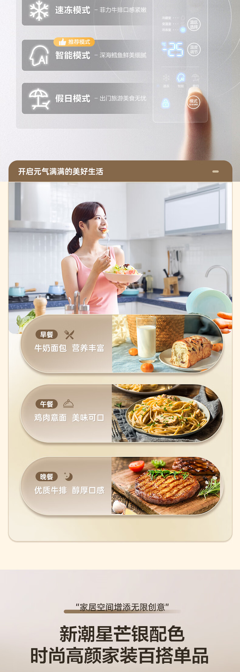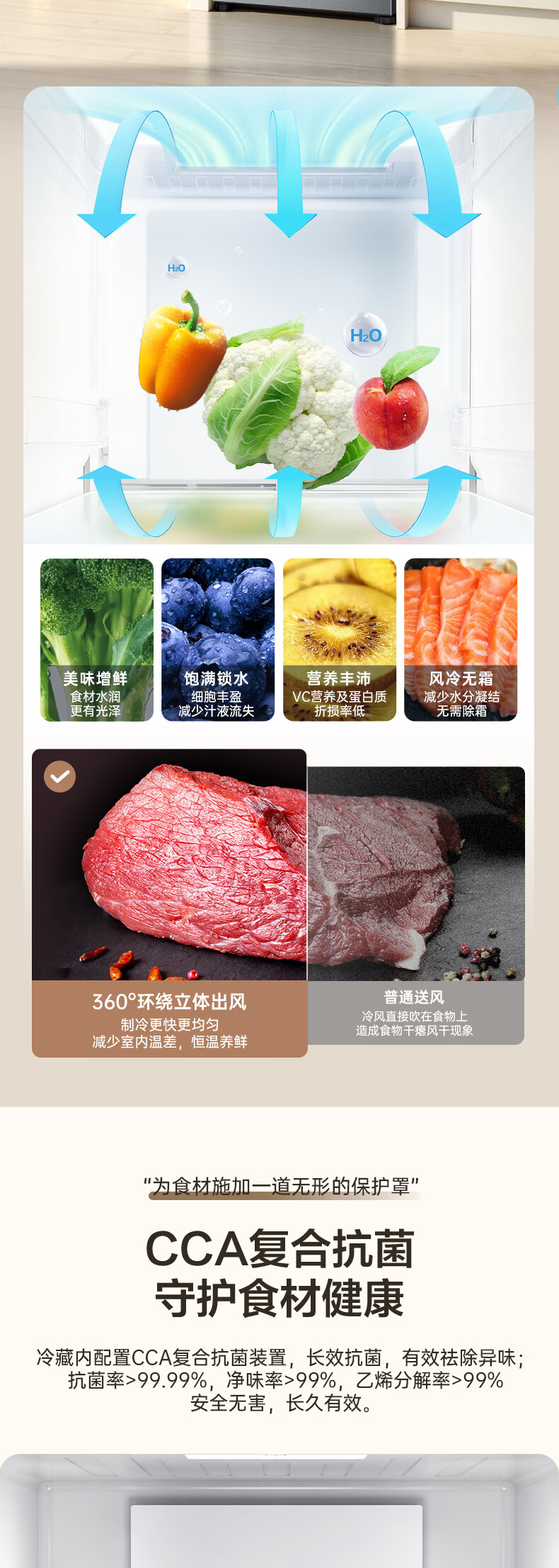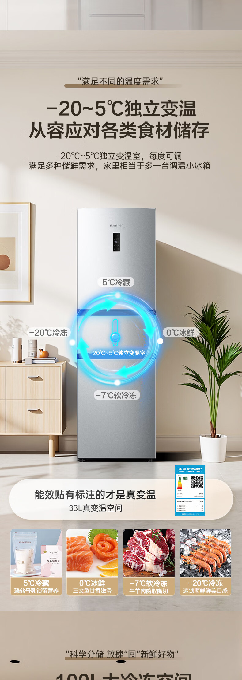 容声273L三开门小冰箱小型家用超薄风冷无霜一级能效变频小户型出租房换新BCD-273E20RNLAJ国家补贴
