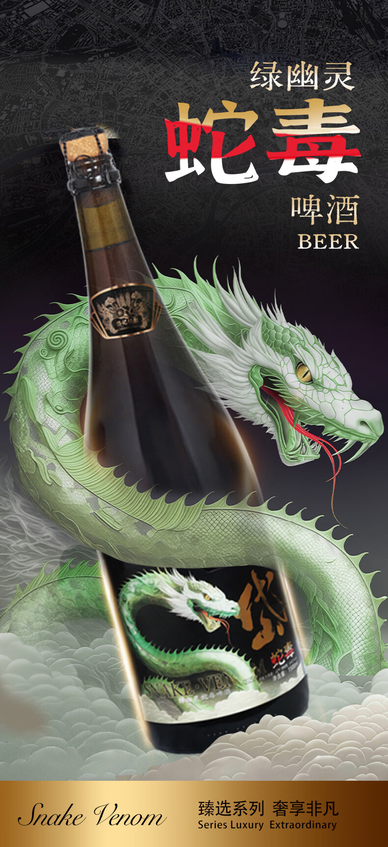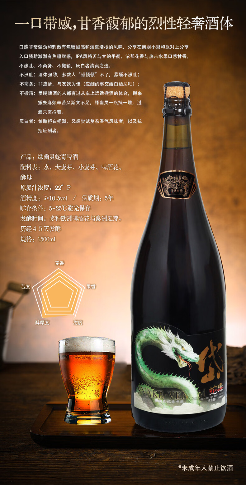 岱记精酿【年货】1500ml绿幽灵啤酒青岛产超大瓶高端原浆精酿 原麦汁22度 岱记精酿绿幽灵蛇毒啤酒1500ml*2瓶 1500mL 1瓶 单瓶装