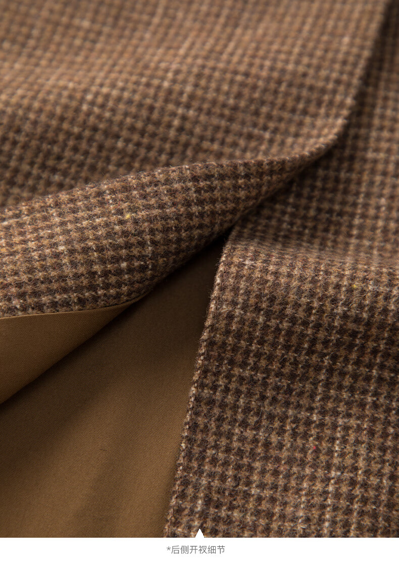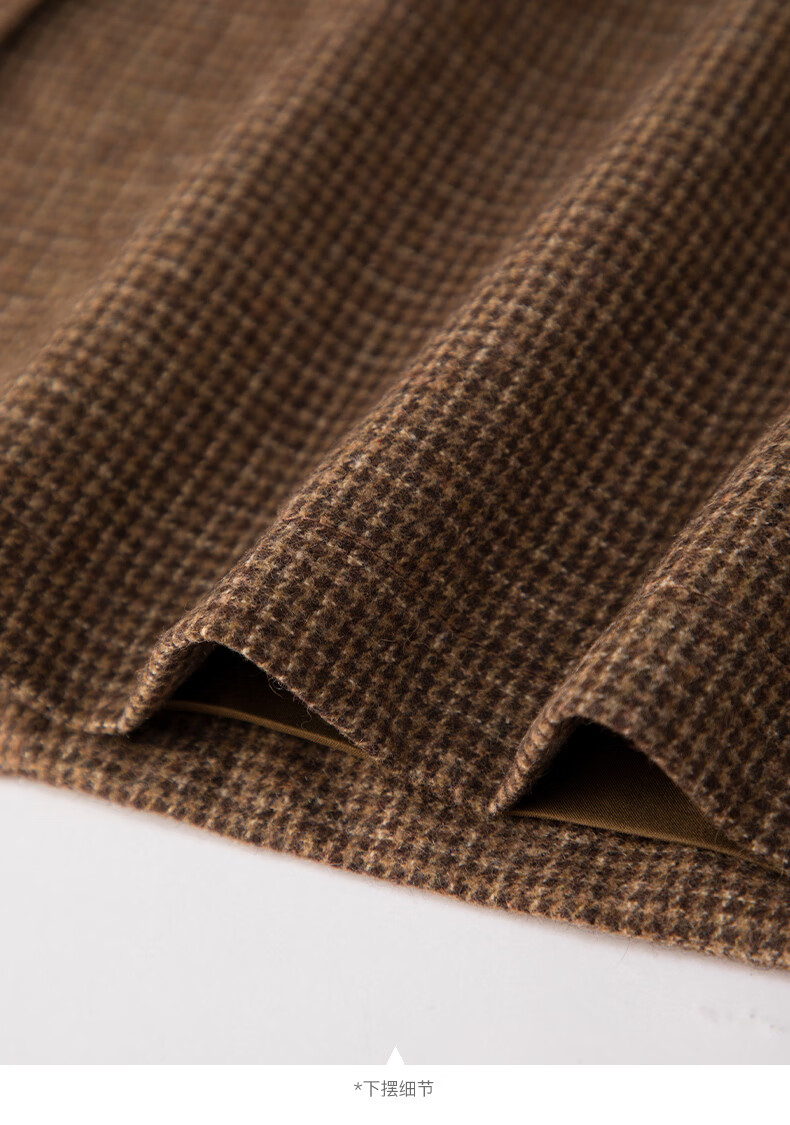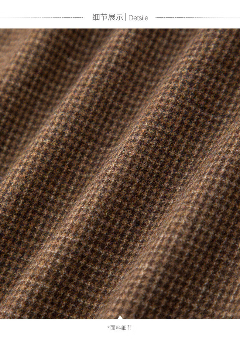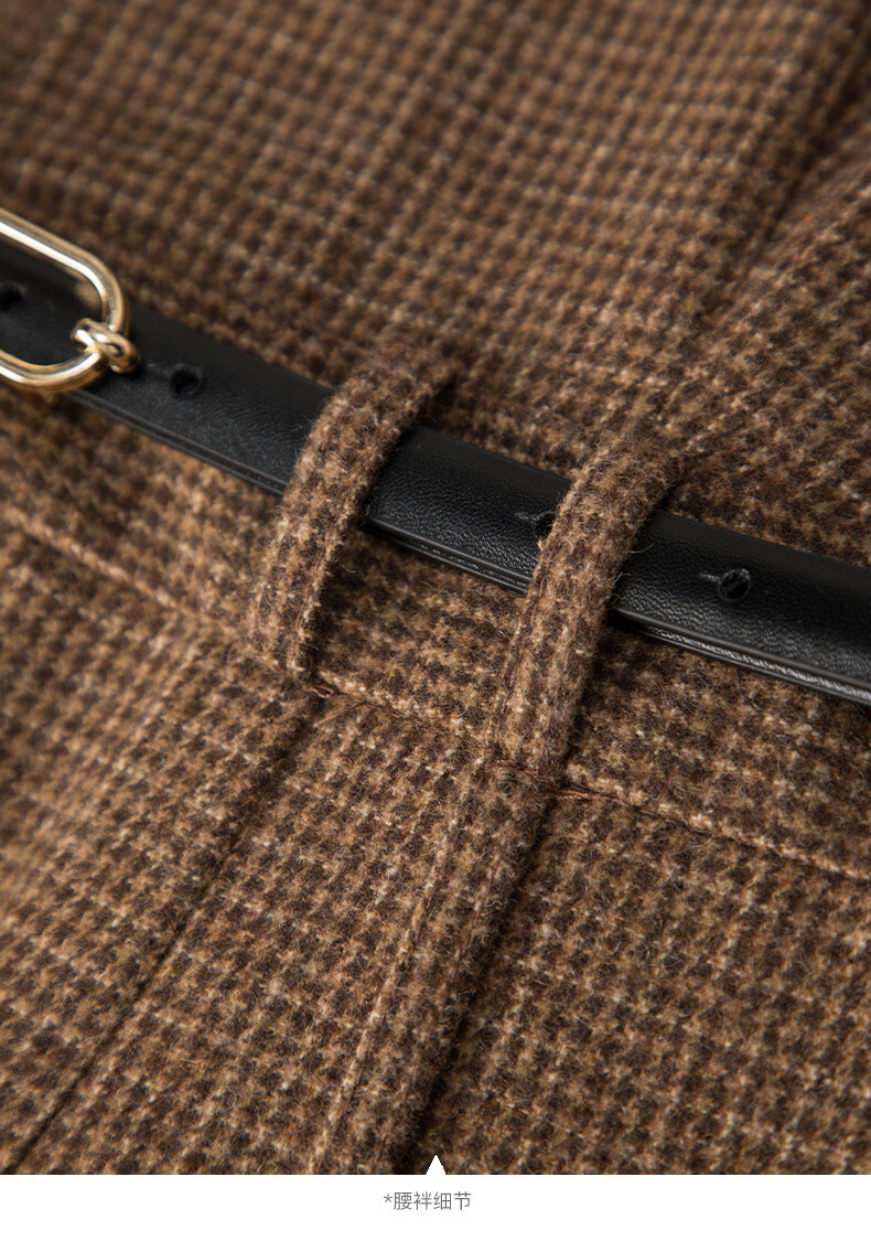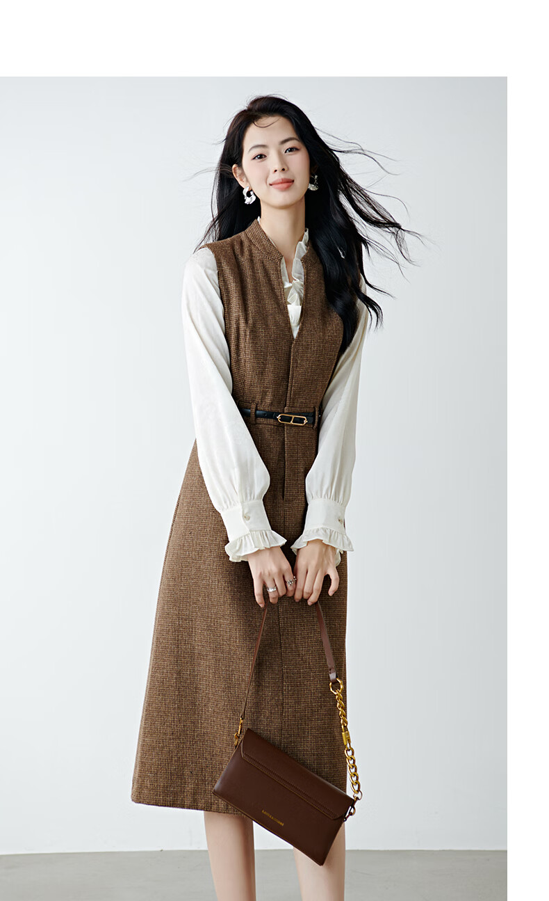 晚白【新品】冬款时尚复古格纹羊毛裙挺括修身优雅百搭无袖连衣裙 深咖色 L