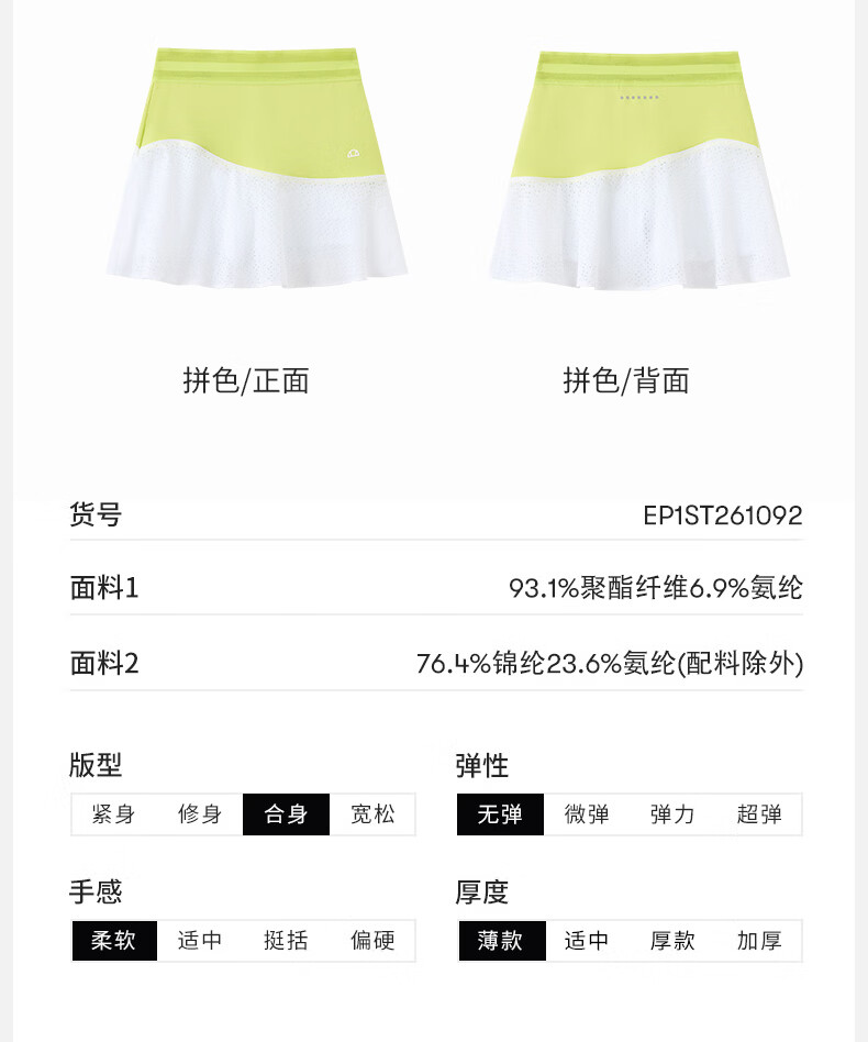 ellesse小贝壳26春新品网球裙专业运动透气修身显瘦吊带连衣裙女 星云白 S
