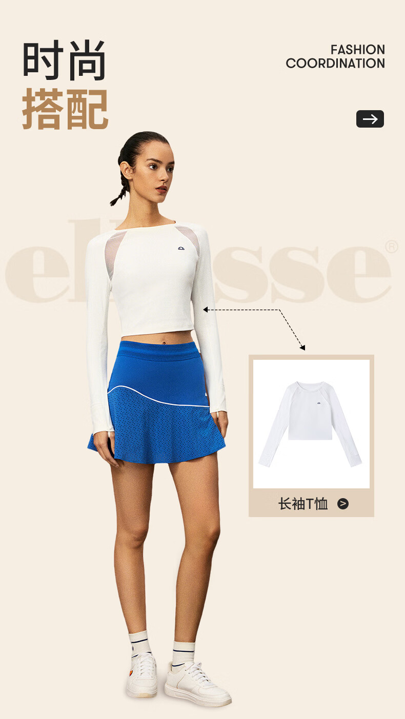 ellesse小贝壳26春新品网球裙轻量透气防走光带打底biubiu半裙女 复古蓝 M