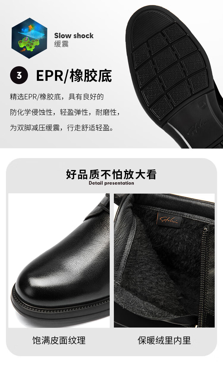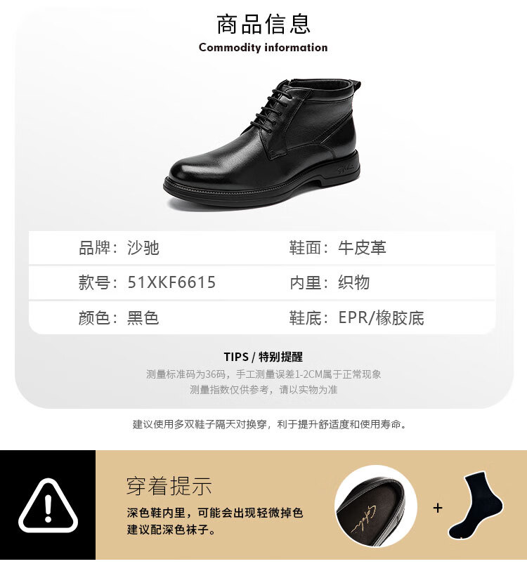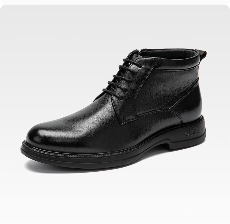 沙驰(SATCHI)男靴【摔纹牛皮加绒靴】新款简约商务靴保暖通勤正装切尔西靴 黑色(51XKF6615) 加绒 37 欧码(选小一码)