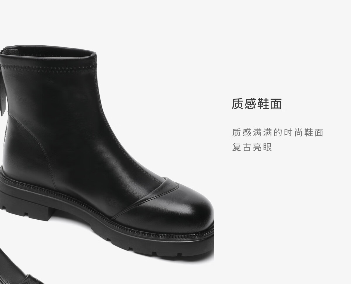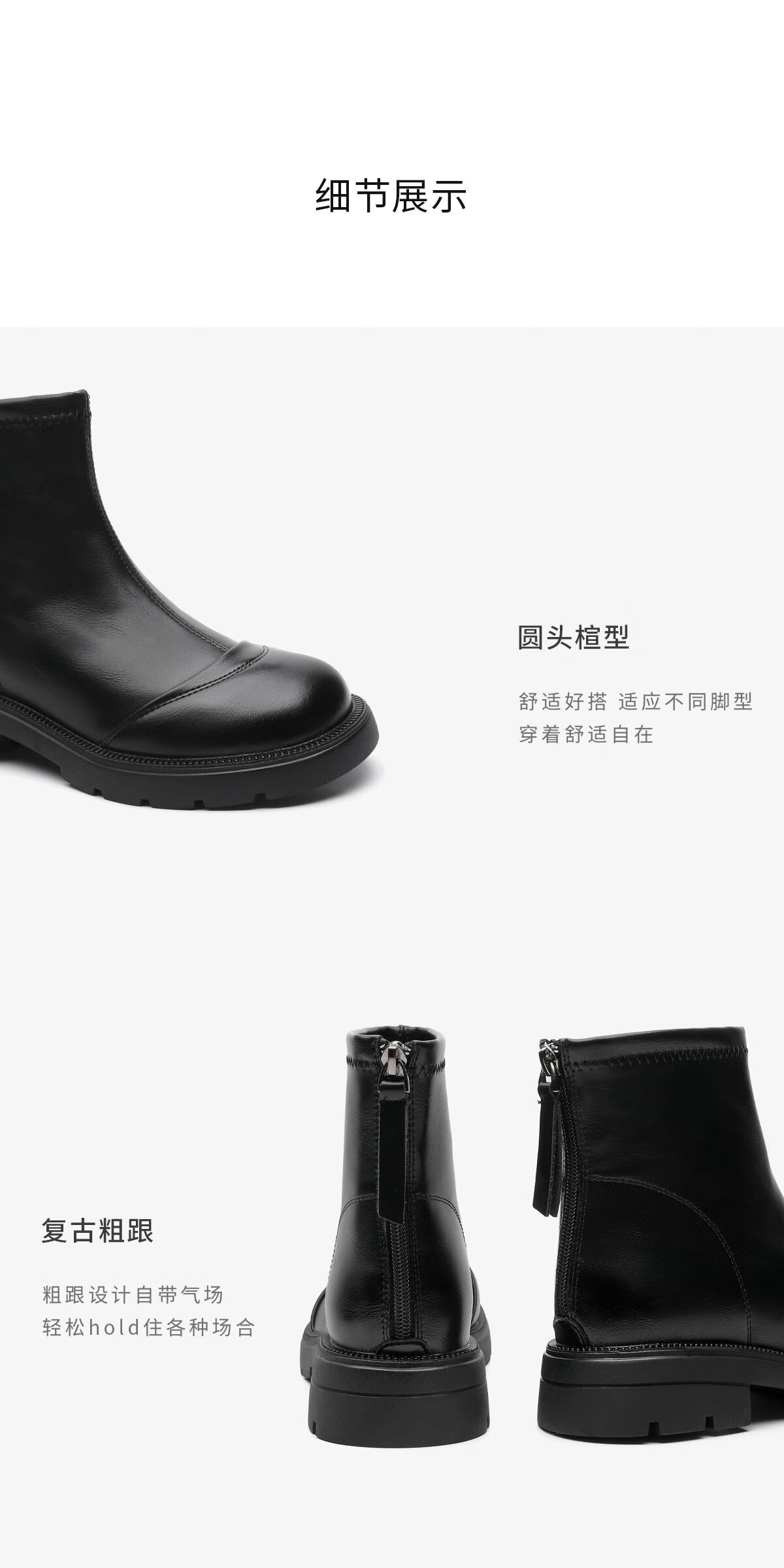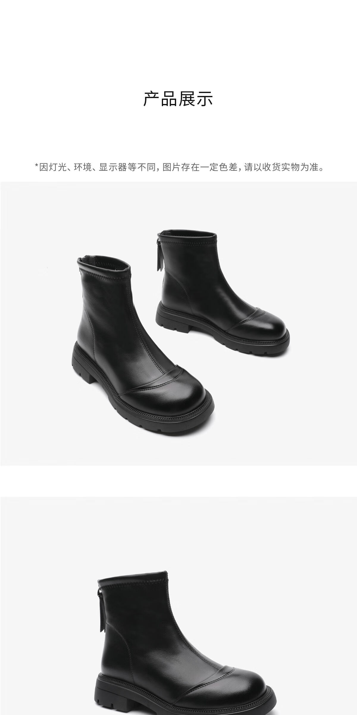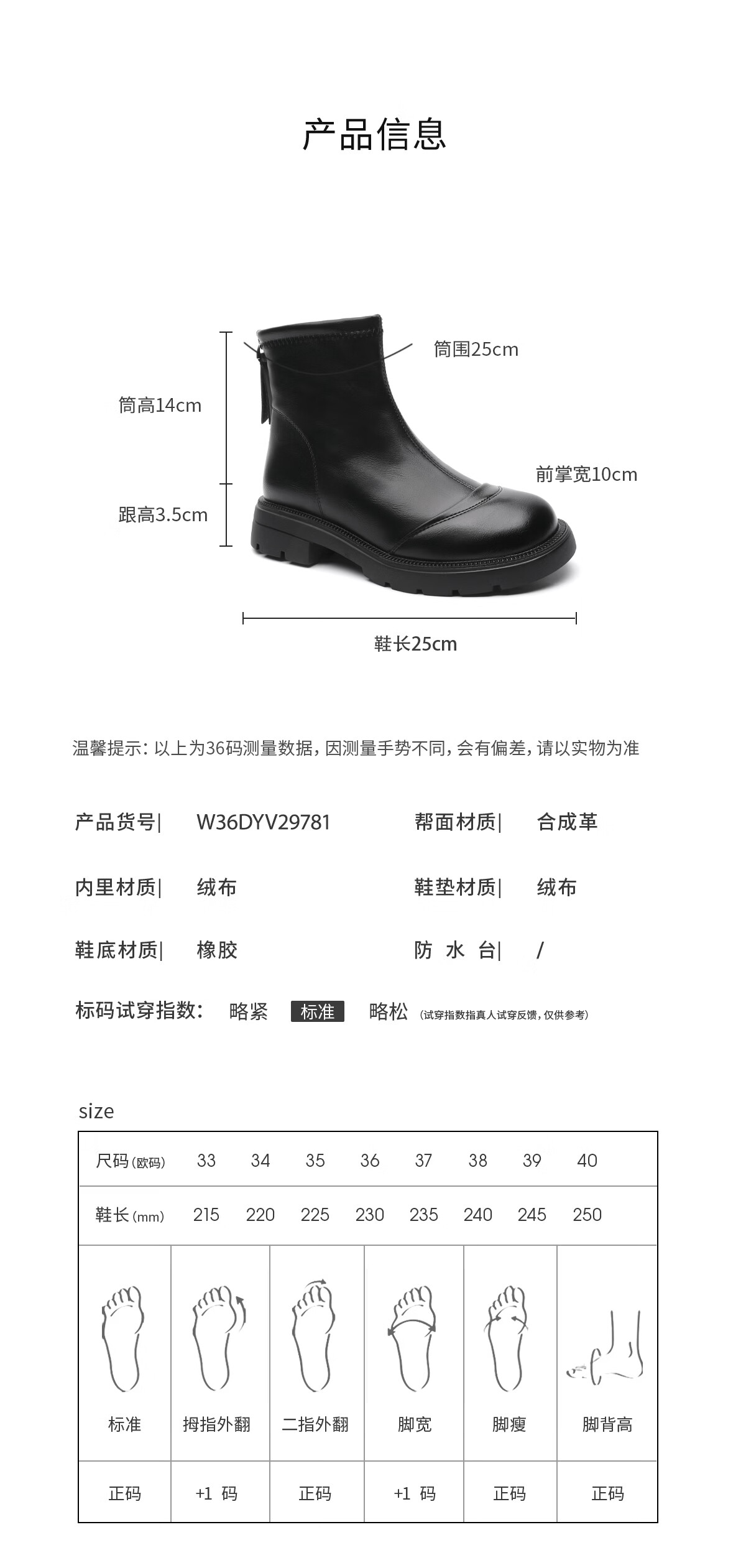 月芽儿2025年秋季季新款时装靴女小个子高增短靴瘦瘦质马丁靴 绒里黑色01T 34