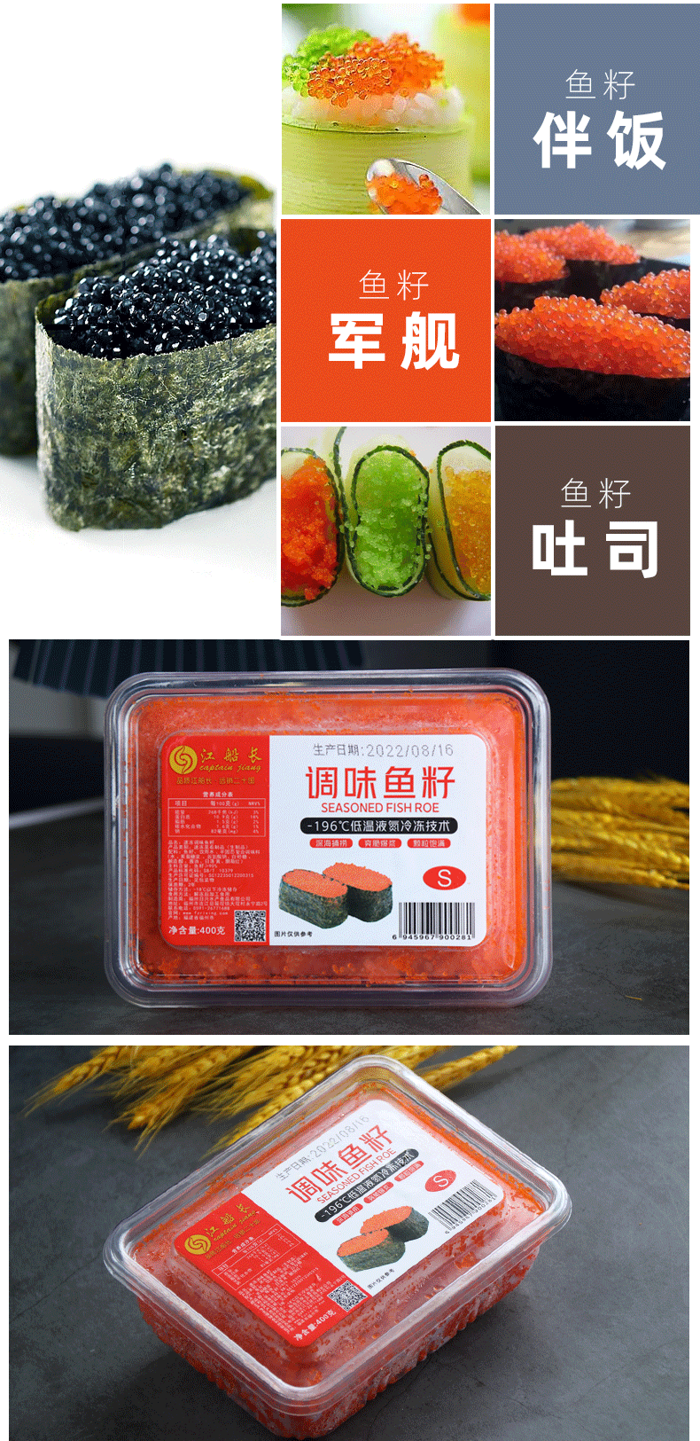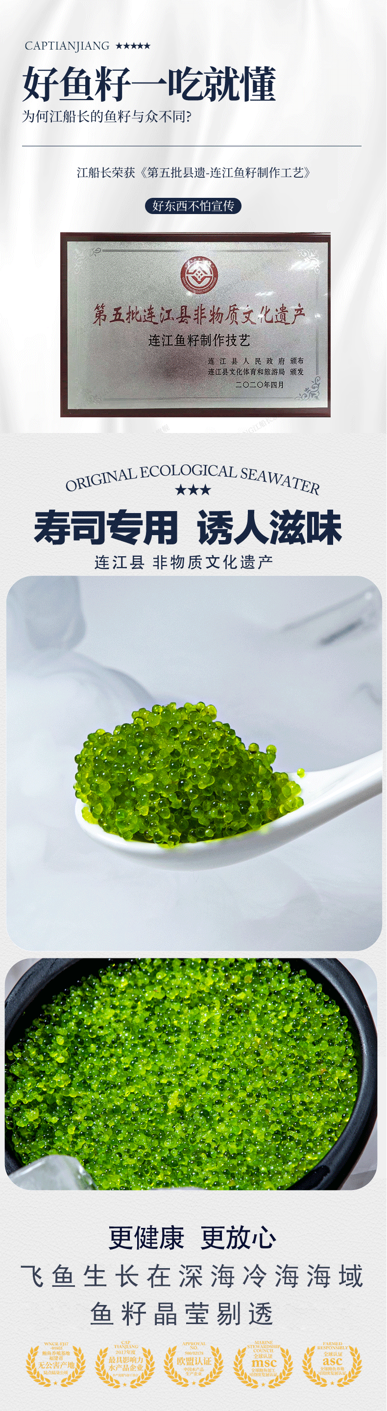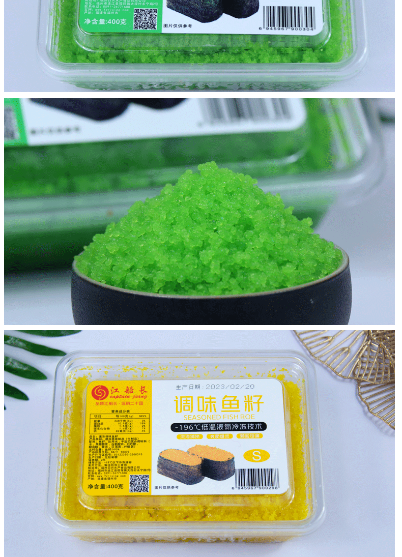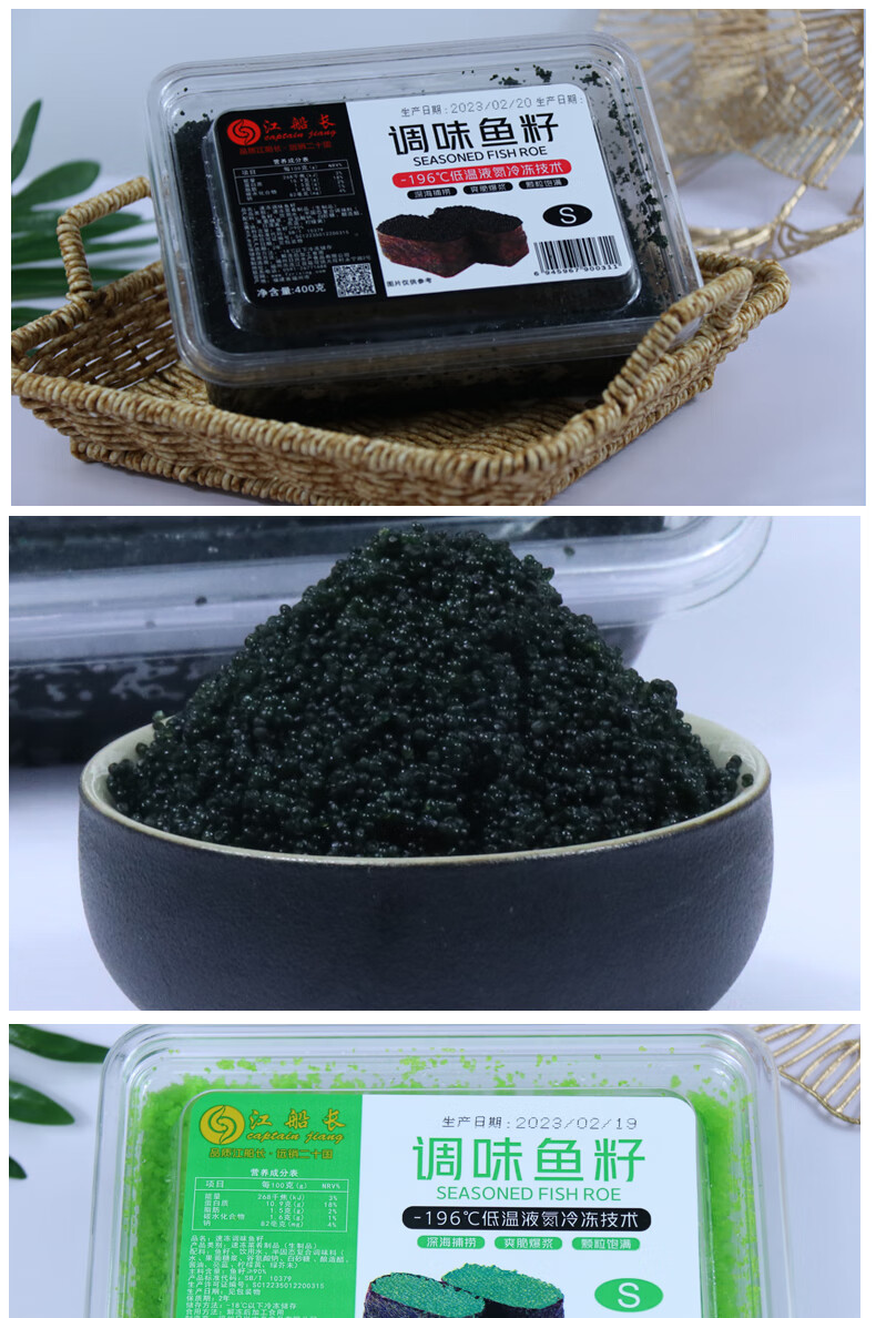 江船长鱼籽寿司饭团食材海鲜生鲜拌饭调色调味鱼籽多色新鲜鱼子酱 绿色400g鱼籽