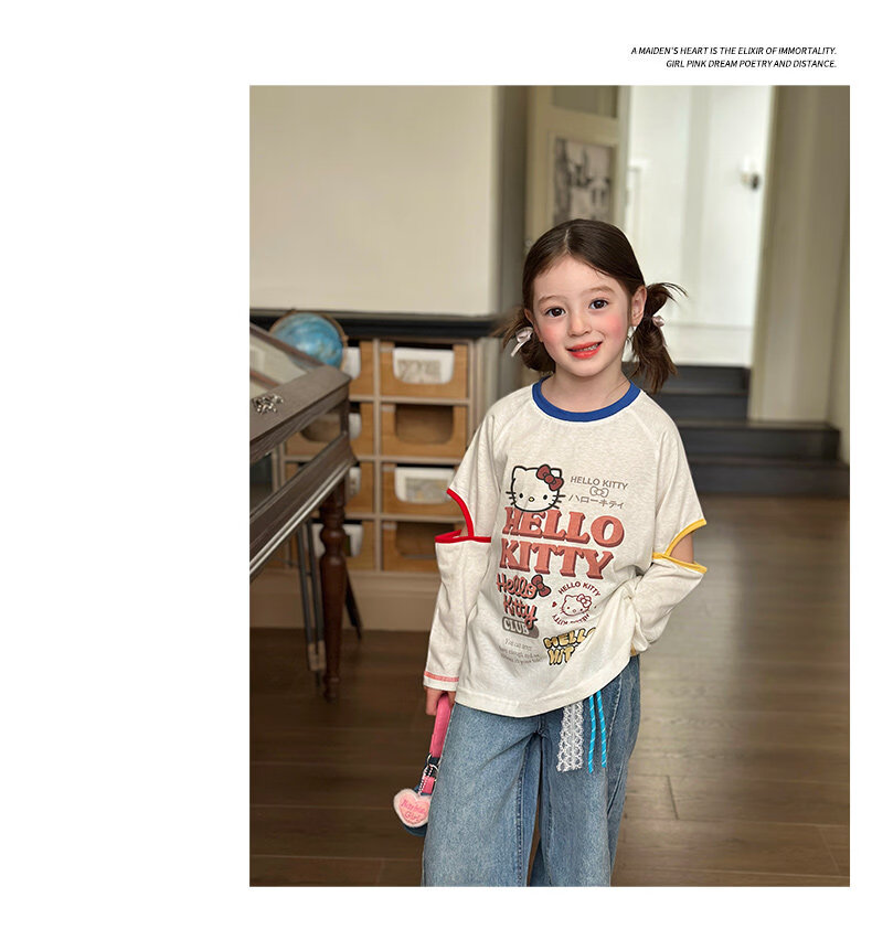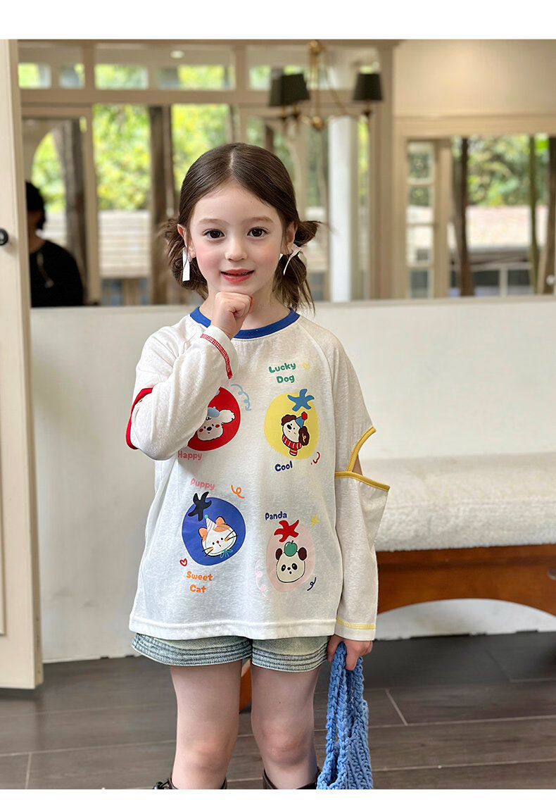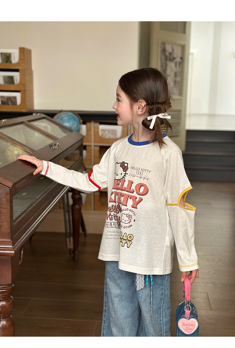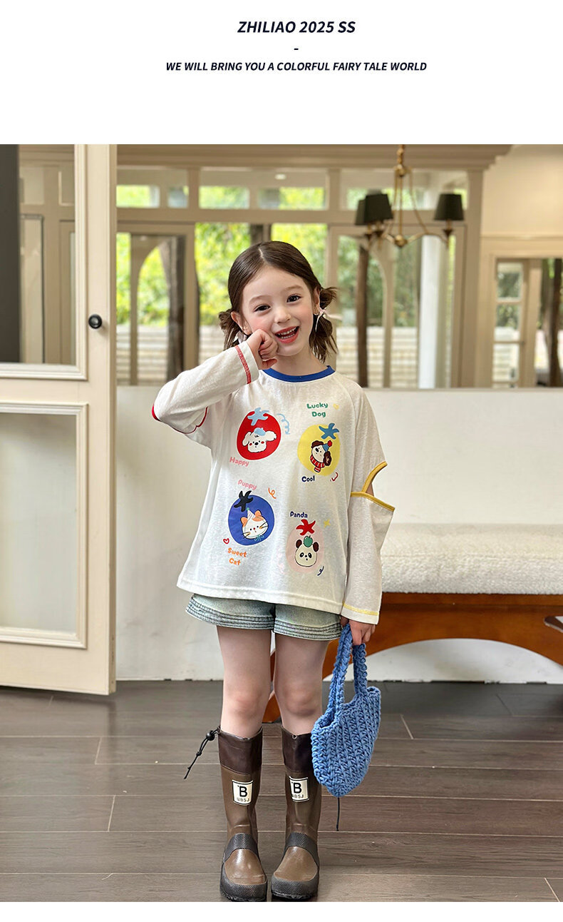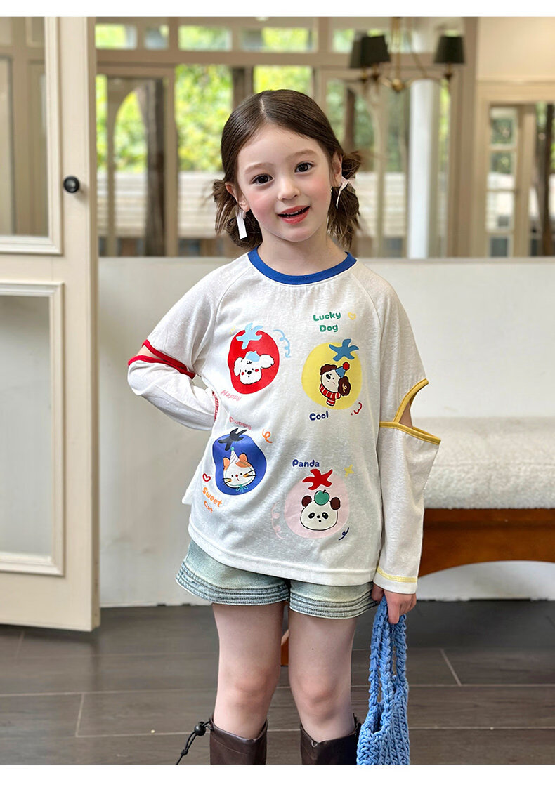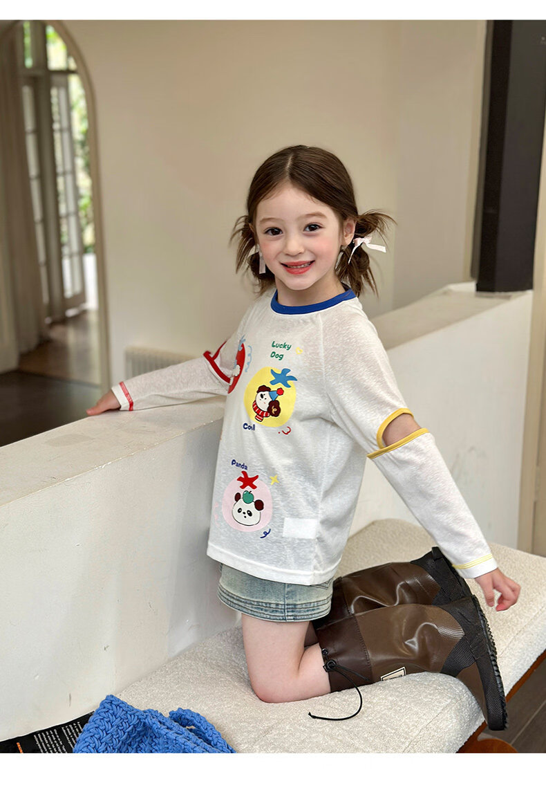 栀了成长记童装女童百搭插肩袖撞色上衣2026春季儿童破洞长袖T恤 白色 上衣 100 cm