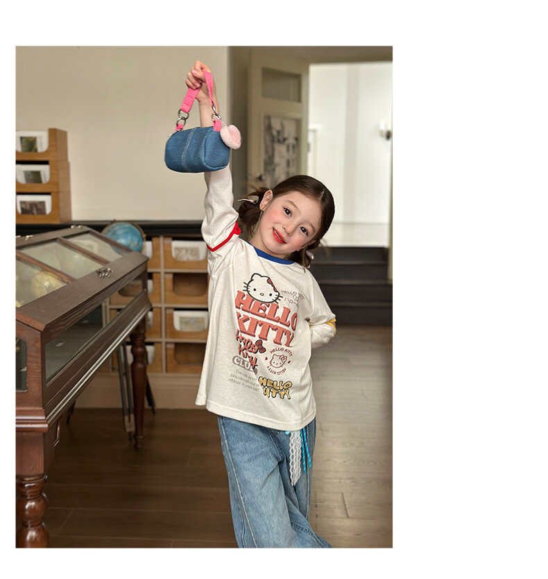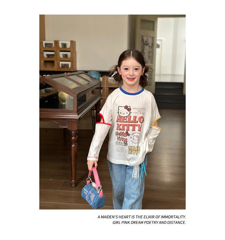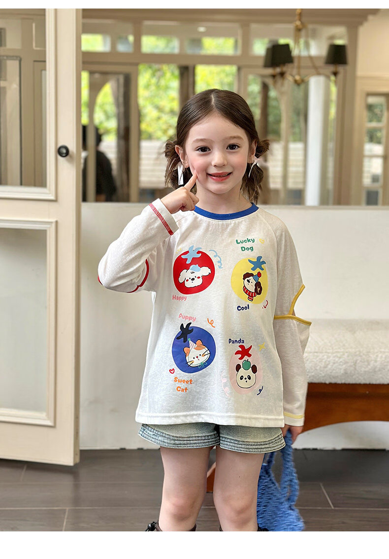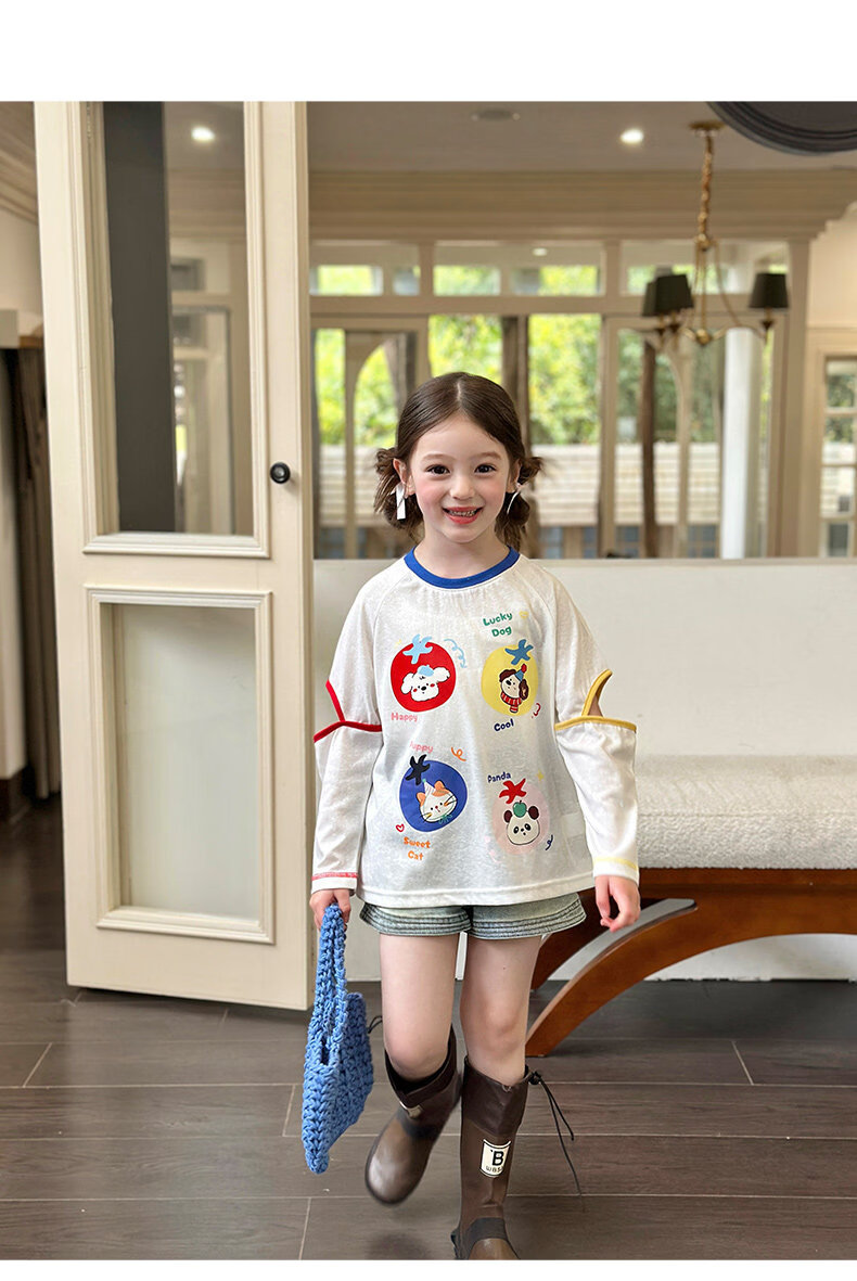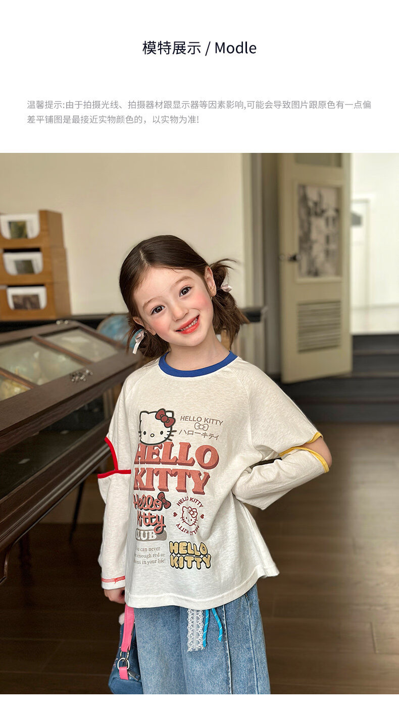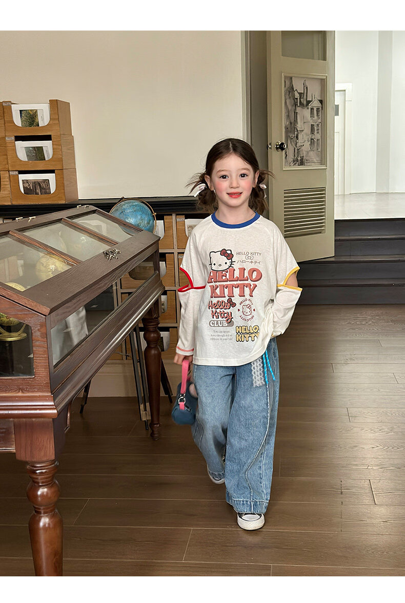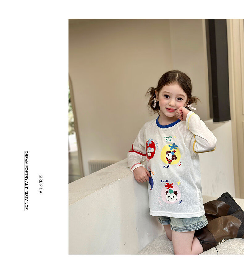 栀了成长记童装女童百搭插肩袖撞色上衣2026春季儿童破洞长袖T恤 白色 上衣 100 cm