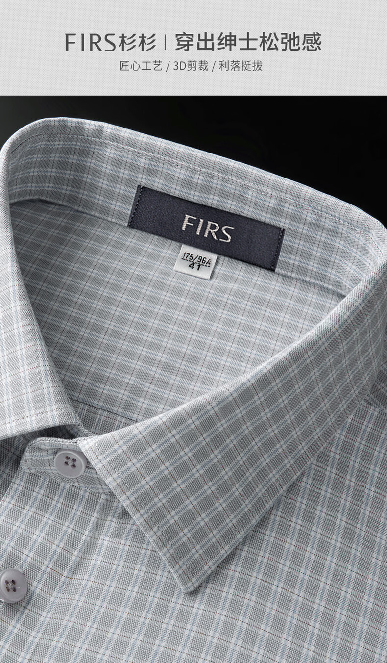 杉杉(FIRS)【200支免烫】长袖衬衫男四季款亲肤柔软桑蚕丝顺滑商务通勤衬衣 灰细格 39 170/88A