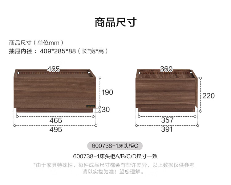 全友家居 意式极简床头柜收纳柜抽屉式卧室家用储物置物柜子