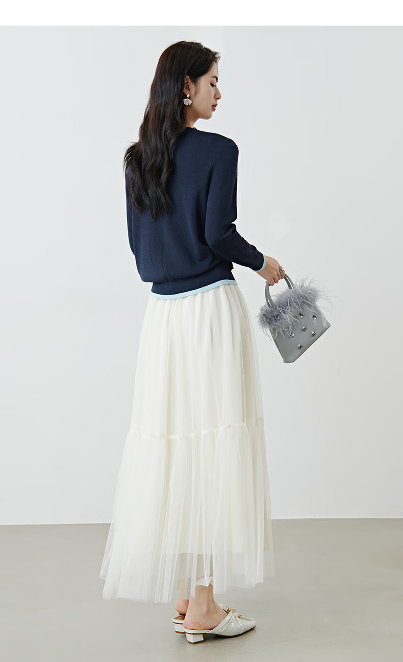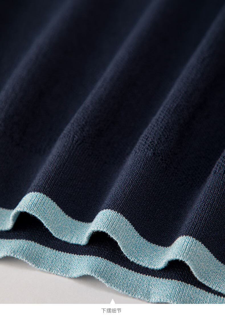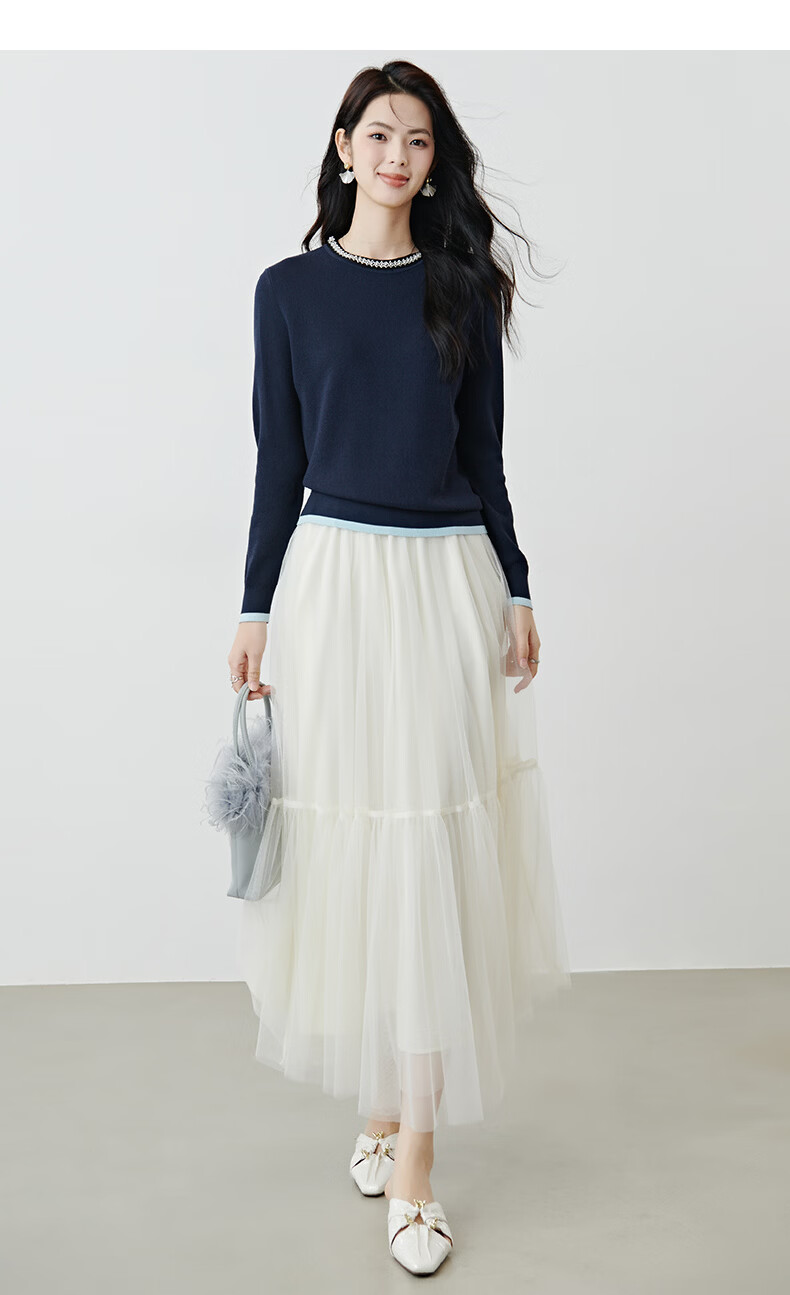 晚白2026年春款时尚撞色钉珠圆领上衣亲肤显白休闲针织衫女 深蓝色 S